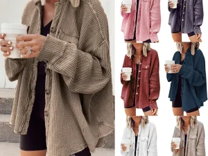 Button Shirt Jacket Women Lapel Long Sleeve Blouse Fashion Jacket Tops