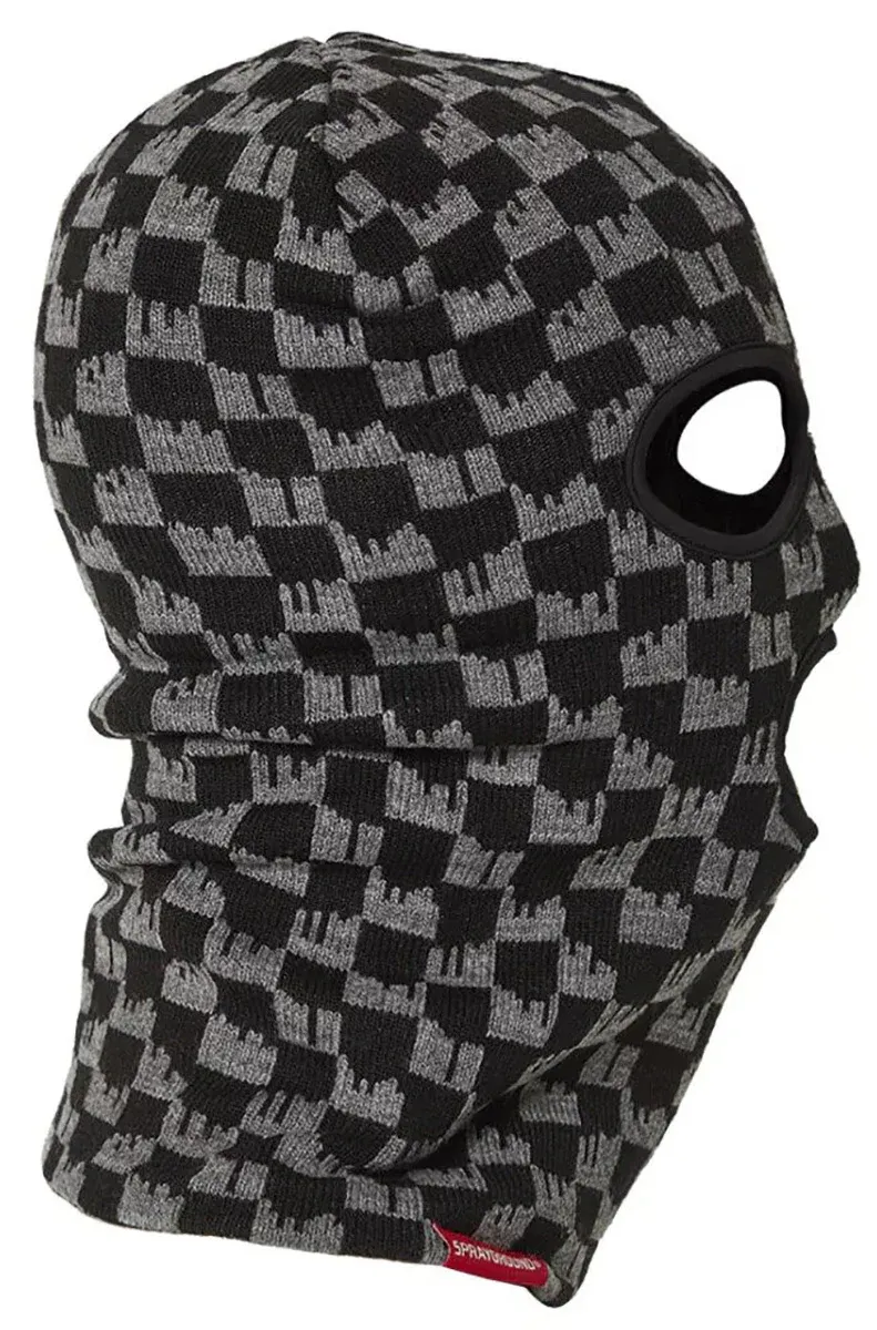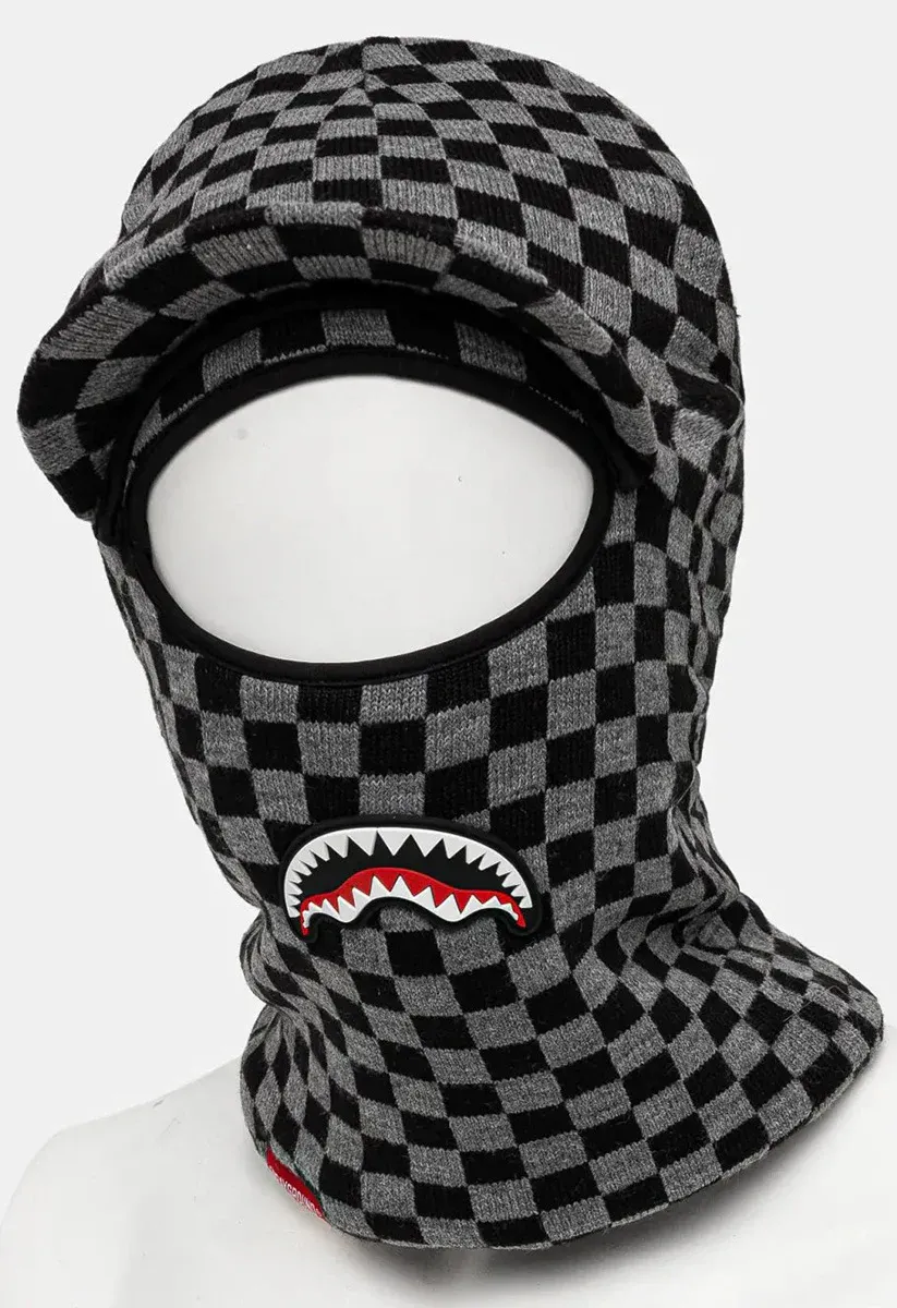 Sprayground Shark Bite Visor Ski Mask In Black Grey Check
