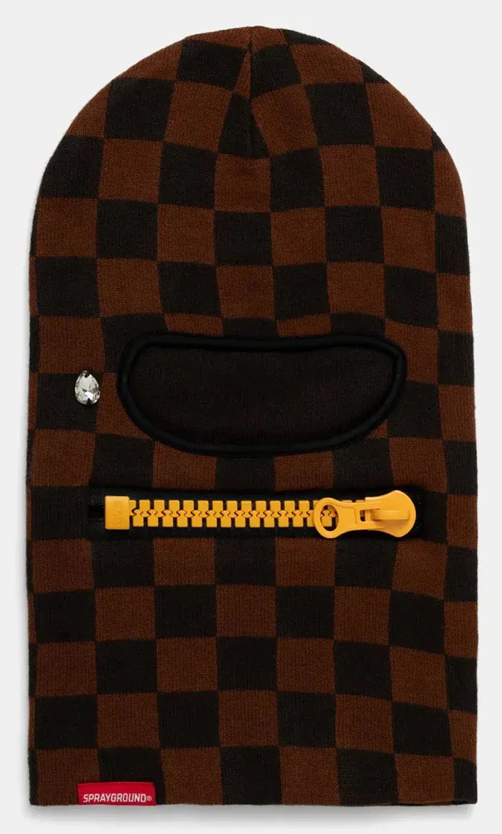 Sprayground Big Bite Ski Mask In Brown Black Check