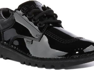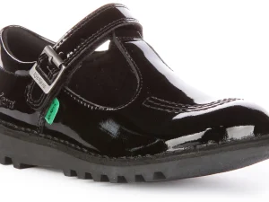 Kickers Kick T Bar Velcro In Black Patent For Junior