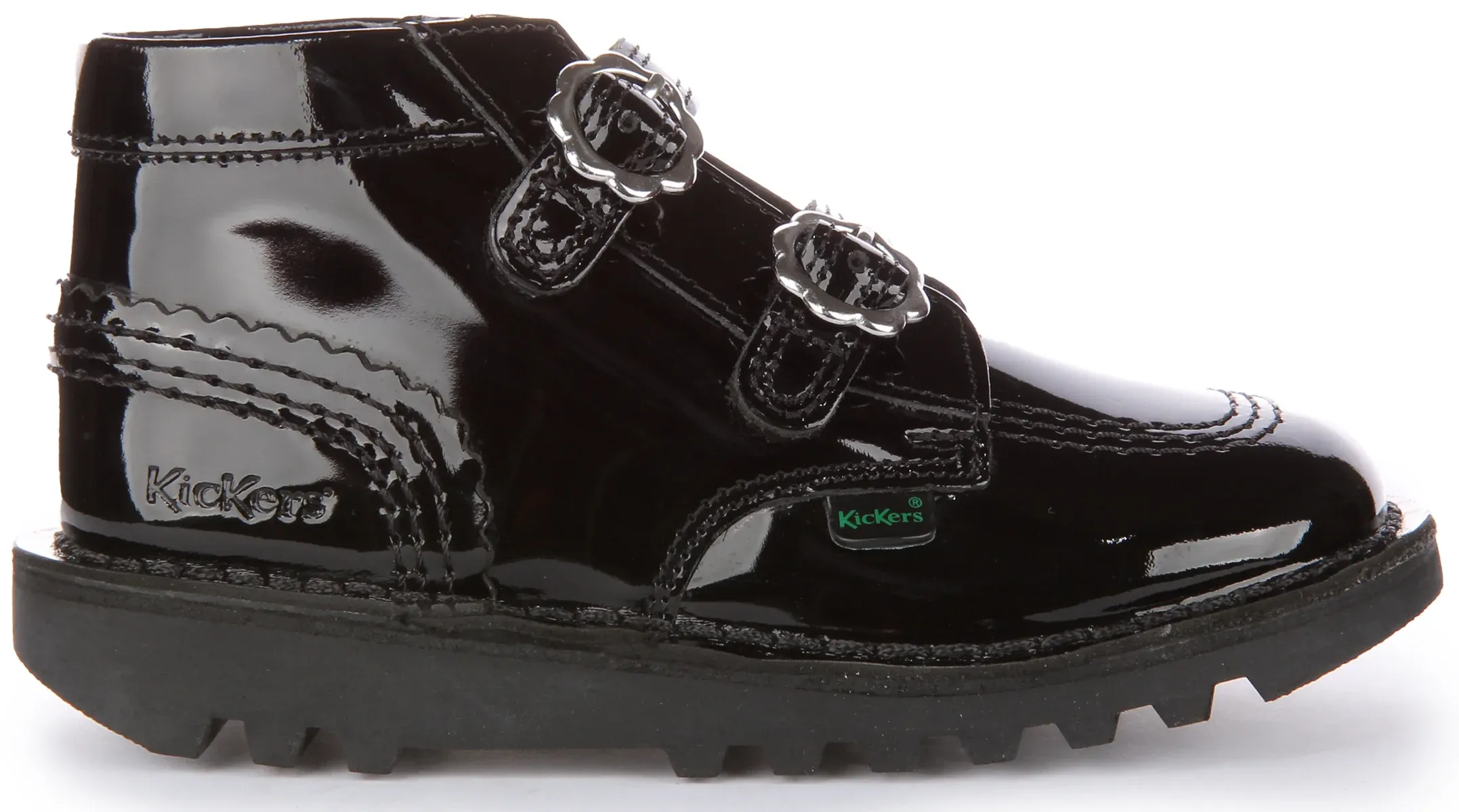 Kickers Kick Hi Velcro Bloom In Black Patent For Infants
