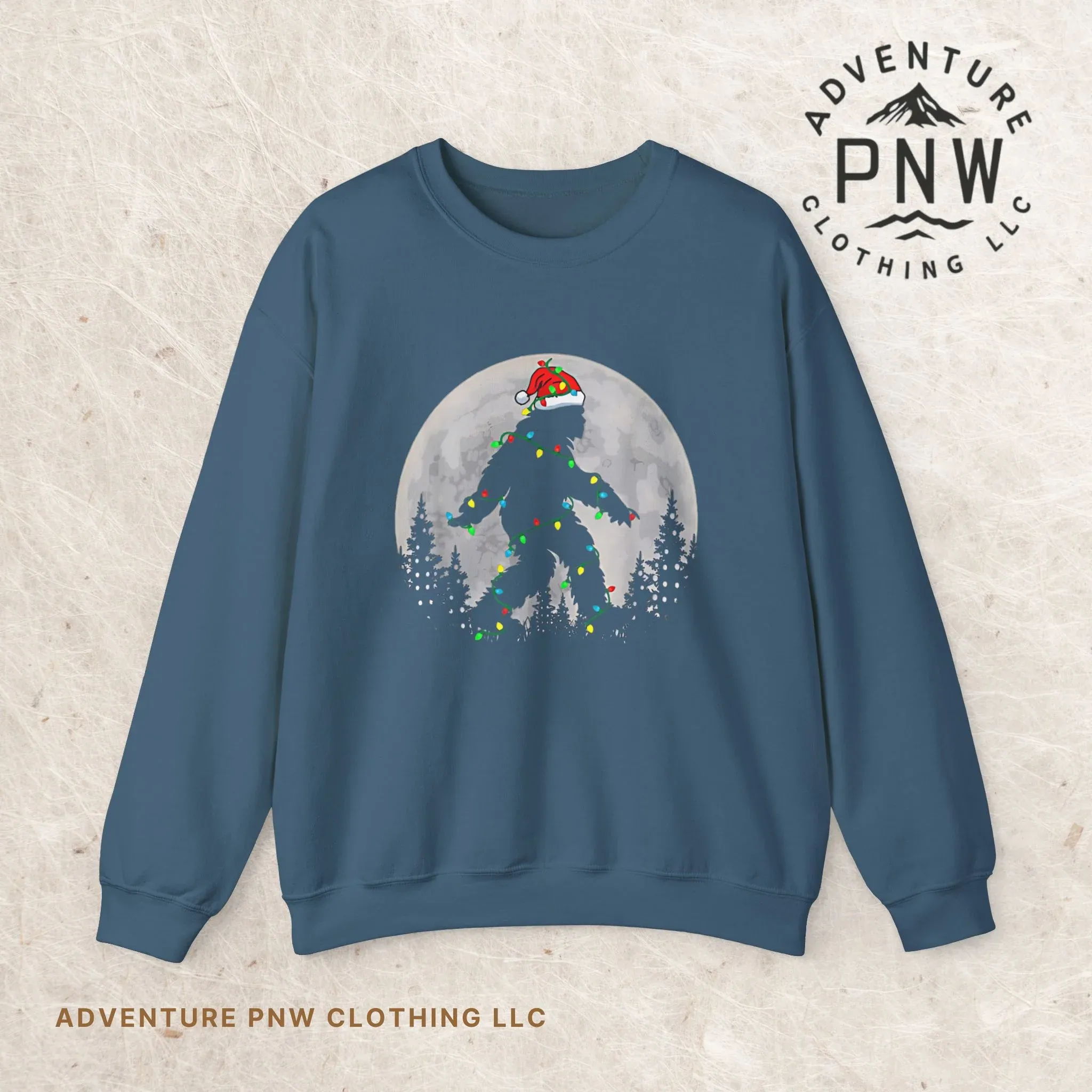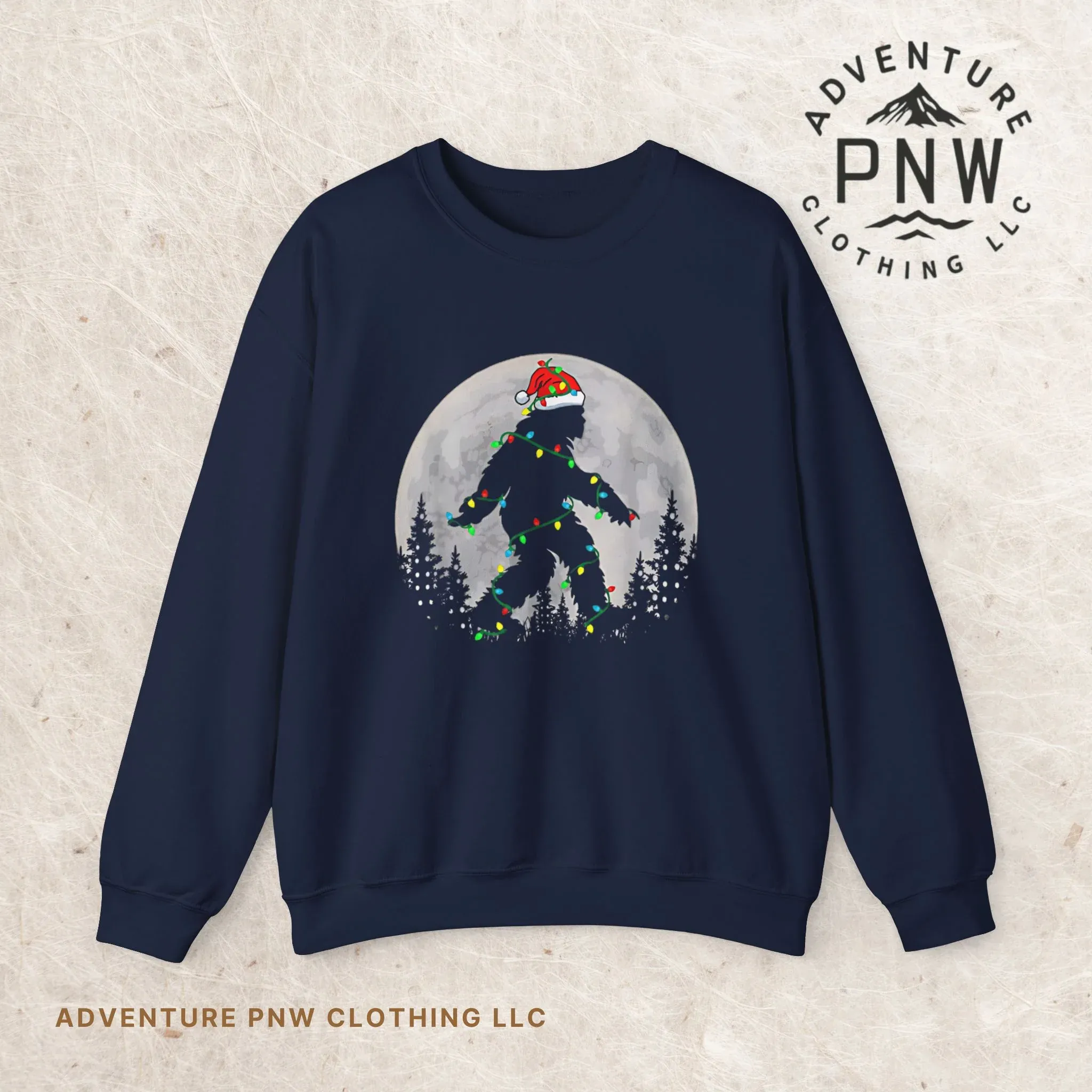 Stay cozy and festive with this Bigfoot Santa Christmas Tree Lights unisex sweatshirt. The humorous design brings a playful vibe to the holiday season, perfect for those who enjoy unique and quirky Christmas attire. This sweatshirt is ideal for Christmas parties, holiday gatherings, or simply lounging at home during the festive season.