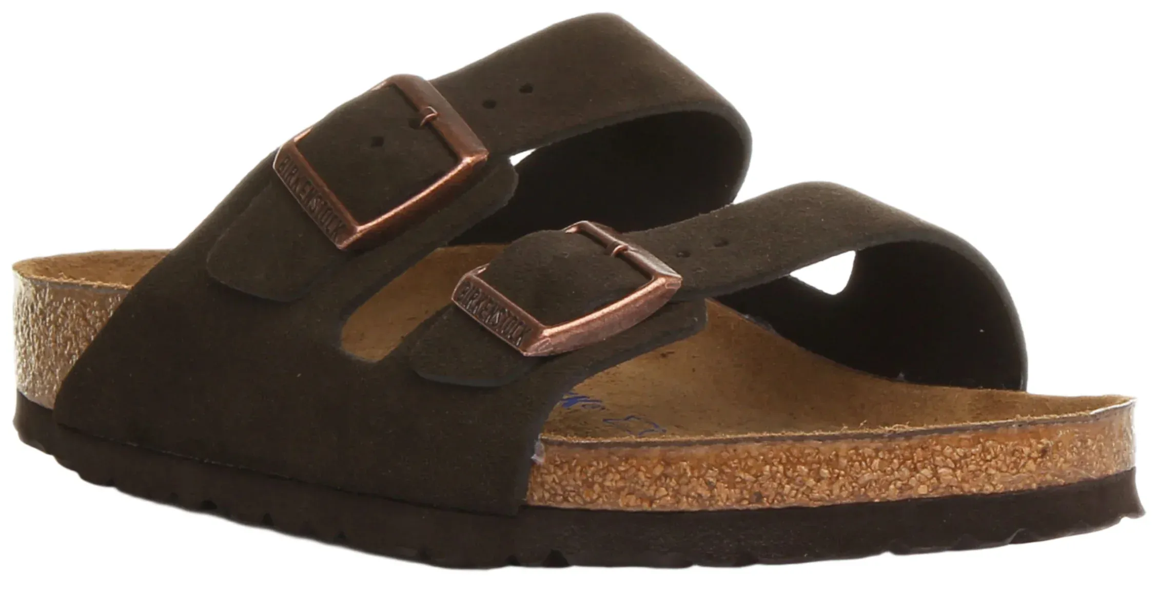 The Birkenstock Arizona is a true classic. This sandal with two individually adjustable straps is a casual sandal with a natural leather upper and soft footbed. The anatomically shaped cork/latex sole provides great foot comfort. They have a suede lining and an EVA sole for added support all day long. These sandals are very comfortable and lightweight.