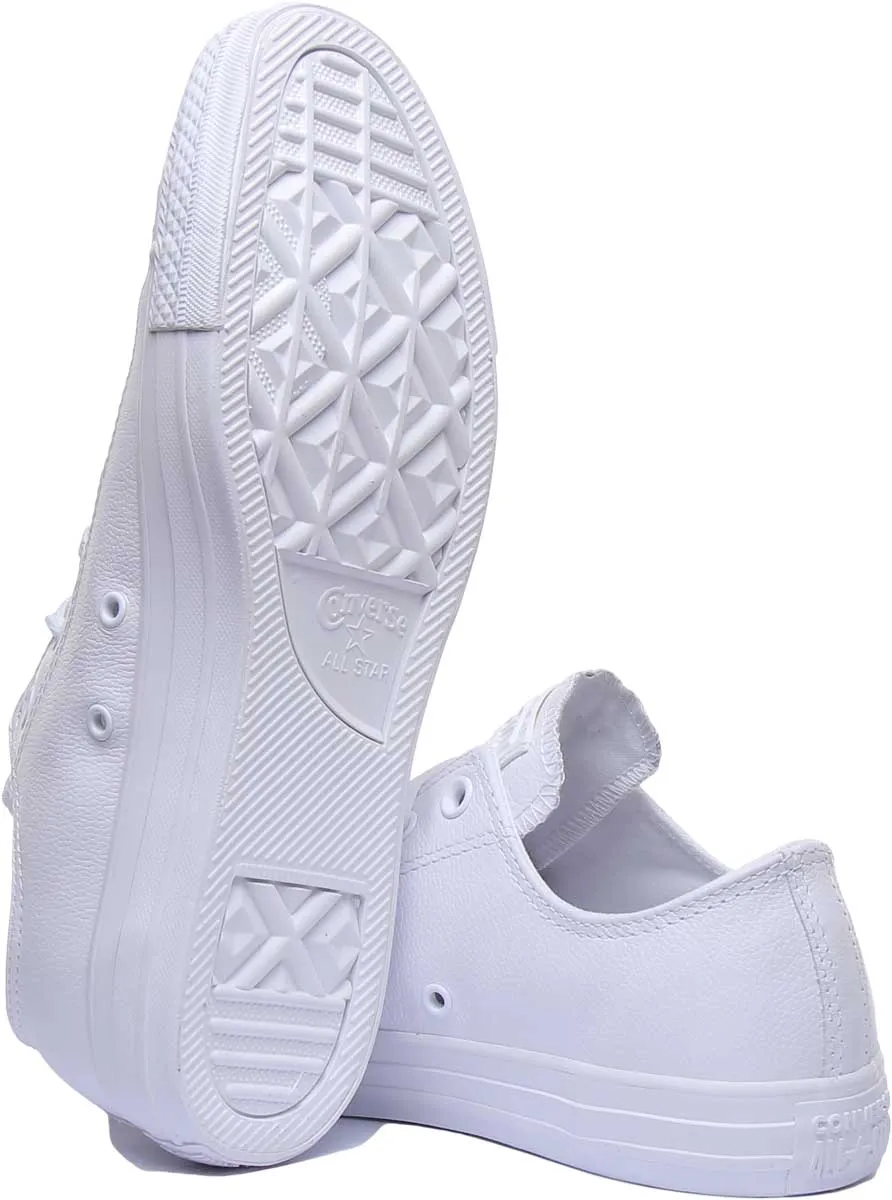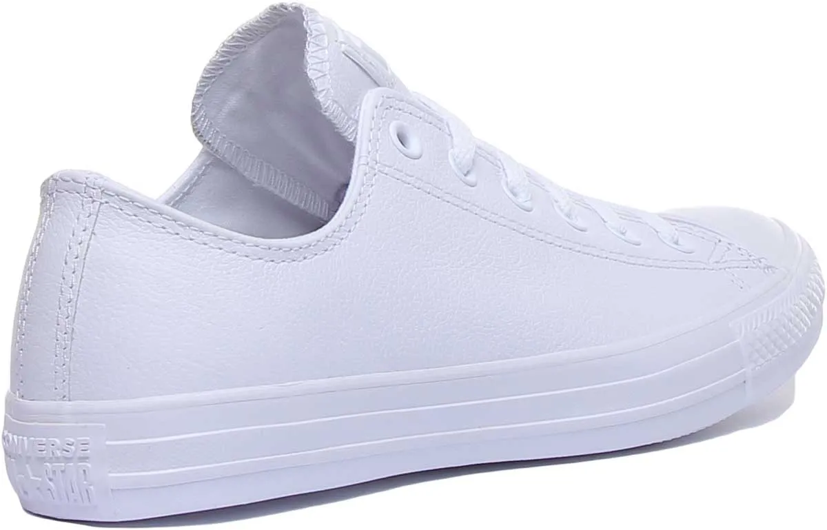 This Converse Chuck Taylor is the low top edition of the most iconic sneaker of all time. It features premium leather upper with the signature rubber toe cap and vulcanized rubber sole. It has lining and insoles made of textile for comfort. This classic design, featuring a clean and simple, forever-in-style look, is one of the most versatile sneakers ever, able to be paired with virtually any outfit and style.