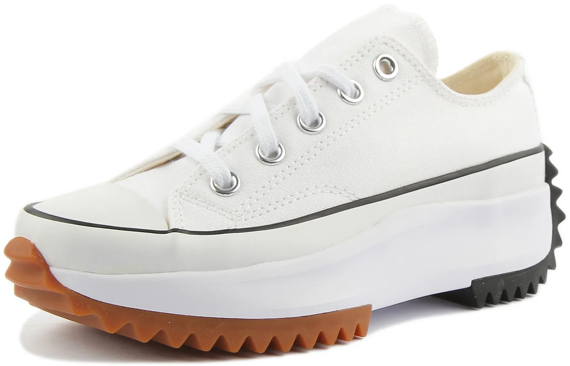 The Converse Run Star Hike Ox is the iconic silhouette reimagined for modern footwear. Made from premium canvas upper, this lace up sneakers feature winged tongue stitching for reinforcement, lugged outsole for traction and OrthoLite cushioning for comfort, while the pop-color star on the heel defines the modern style.