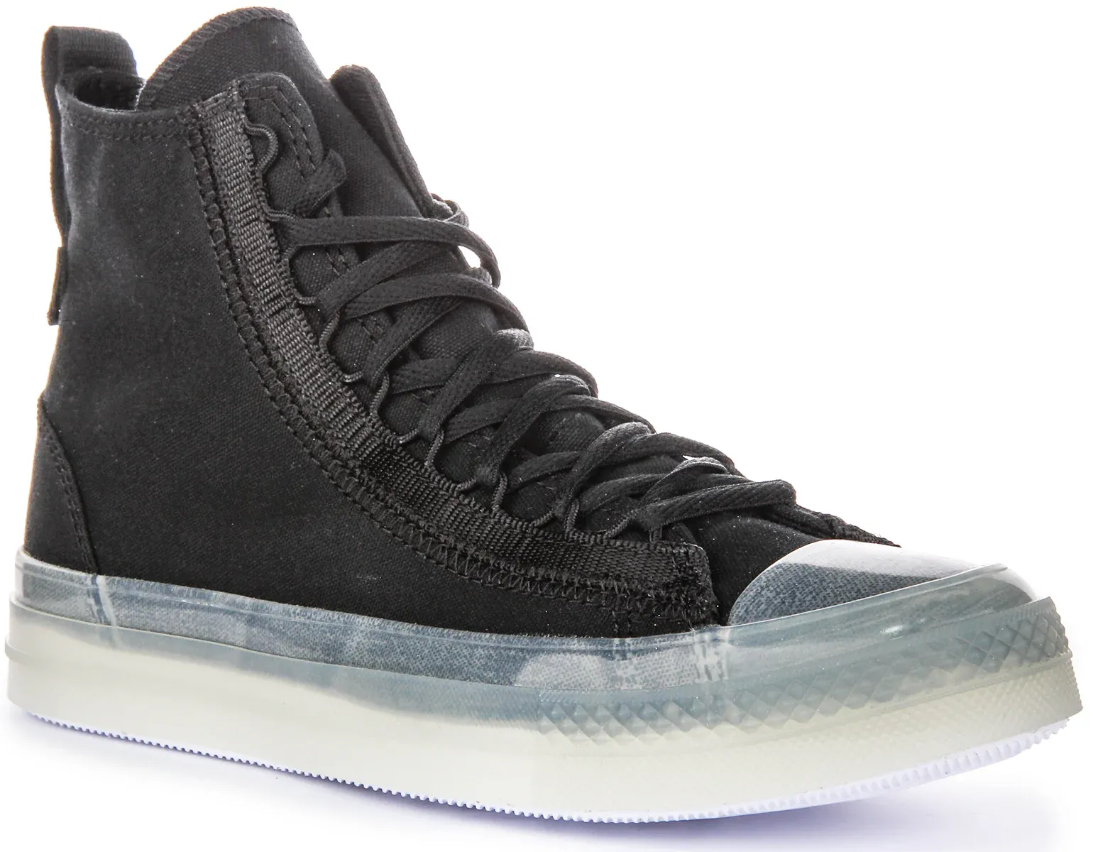 These high top sneakers exude sophistication with a sleek black textile upper that offers timeless elegance and versatility. Crafted from durable textile materials, they provide lightweight comfort and breathability for everyday wear. The CX foam midsole enhances cushioning, while the Converse All Star branding adds a touch of iconic charm.