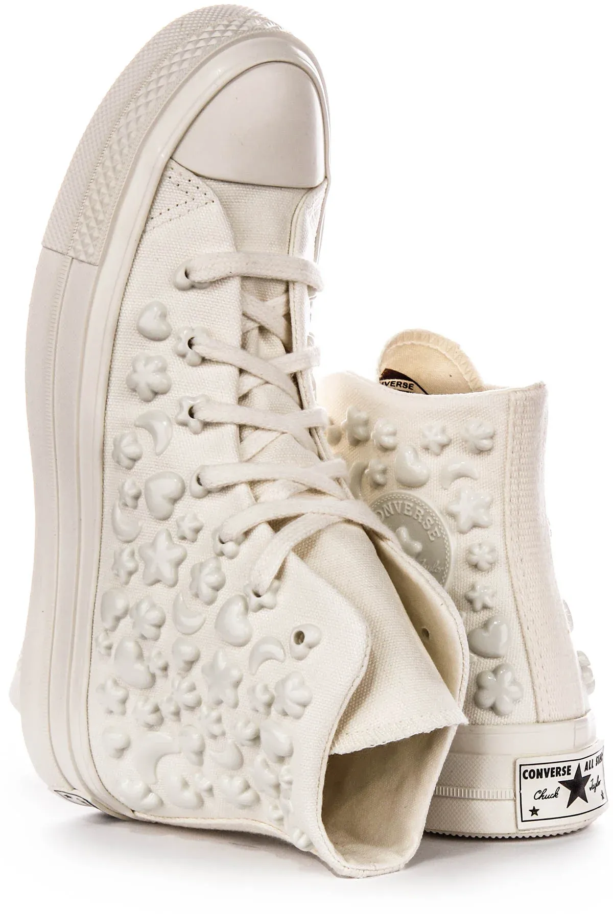 The textile upper provides breathability and style, while the cushioned footbed ensures all day comfort. With their timeless appeal and playful accents, these trainers are perfect for adding a pop of personality to any casual ensemble. Combining retro charm with modern flair, these trainers feature a classic Chuck 70 silhouette adorned with vibrant 3D charms inspired by the energy of the 90s.
