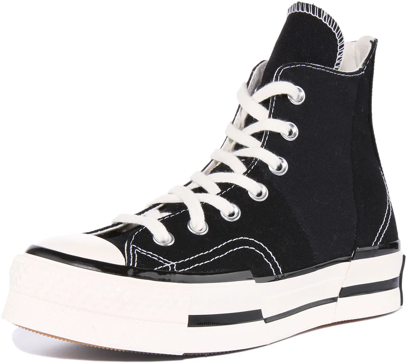 The Converse Chuck 70 Plus Hi Top is an unexpected update on an all time classic. An elevated style icon, it features split cotton canvas upper, OrthoLite sockliner for cushioning, elongated tongue and heel details, exaggerated foxing tape and star ankle patch. Finished with split rubber outsole, these lace up trainers are perfect for any casual occasion.