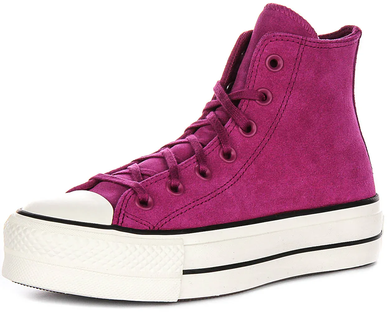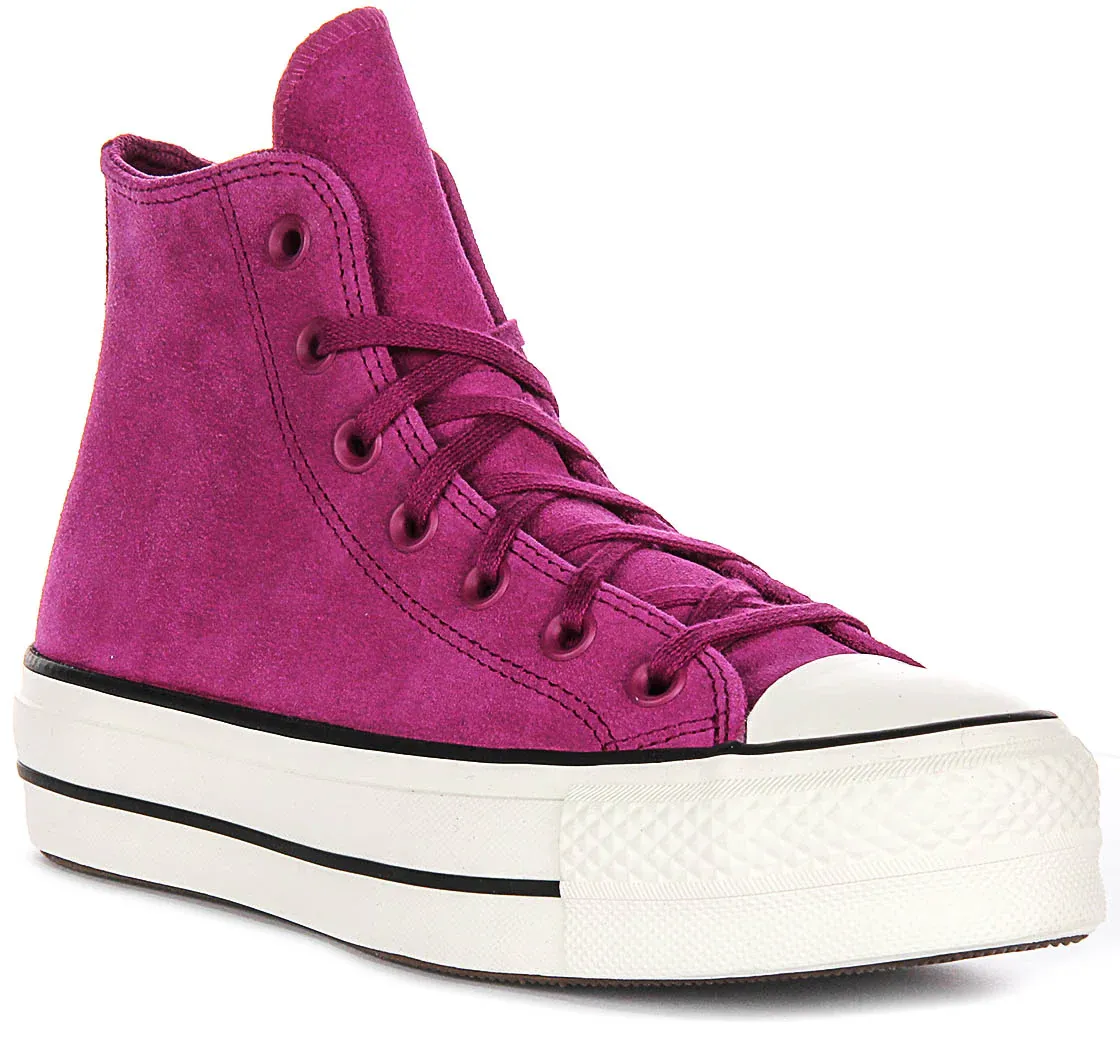 These trainers are designed for comfort, with a cushioned insole and flexible sole for all-day wear. The traditional lace-up fastening with matching magenta laces ensures a secure and adjustable fit, while the high-top silhouette provides additional ankle support and an edgy style.