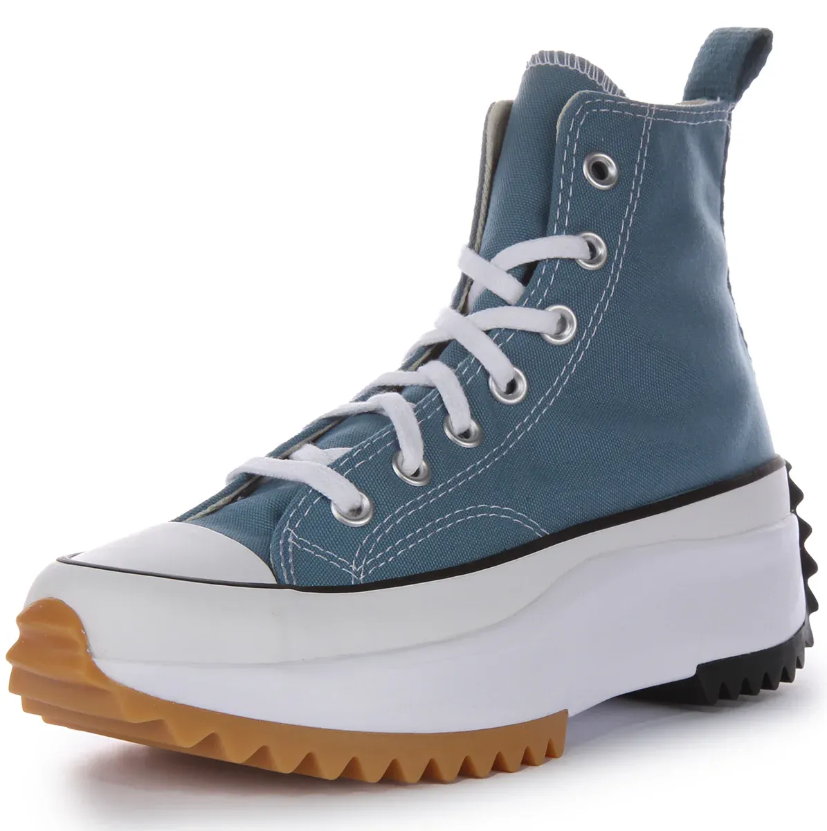 The unique platform sole and teal canvas upper create a bold and trendy look, making these trainers a standout choice for fashion enthusiasts. Perfect for urban adventures, these Converse trainers seamlessly blend contemporary style with the iconic Converse design, ensuring you make a statement with every step.