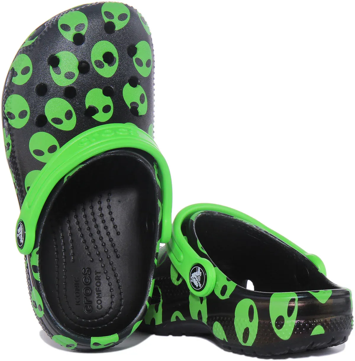 Let your kids enjoy the fun graphics of the Classic Easy Icon Clog. Built with the signature Crocs comfort and amazing style, these clogs will take your kids from school to the pool with ease. Kids can customize their Crocs clog however they like; ventilation holes accommodate Jibbitz brand charms. It features pivoting heel strap for a secure fit and, easy on and off. Perfect clogs for summer.