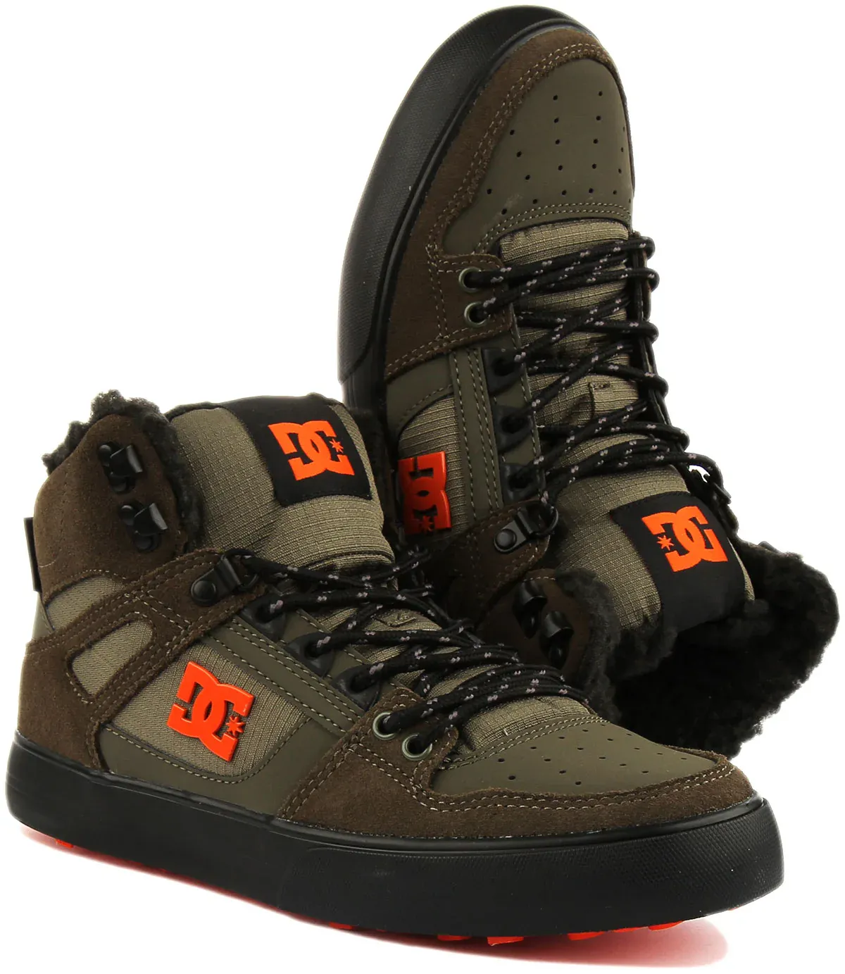 DC Shoes Pure Hi Top WC lace-up trainers have a multi panel upper made from leather, nubuck, suede or mesh. The foam padded tongue and collar provides added comfort and support to the feet. They also feature an EVA sock liner and mesh lining for extra comfort. The rubber outsole provides traction and grip on most surfaces, and sculpted performance cupsole provides stability. A great addition to your shoe collection.
