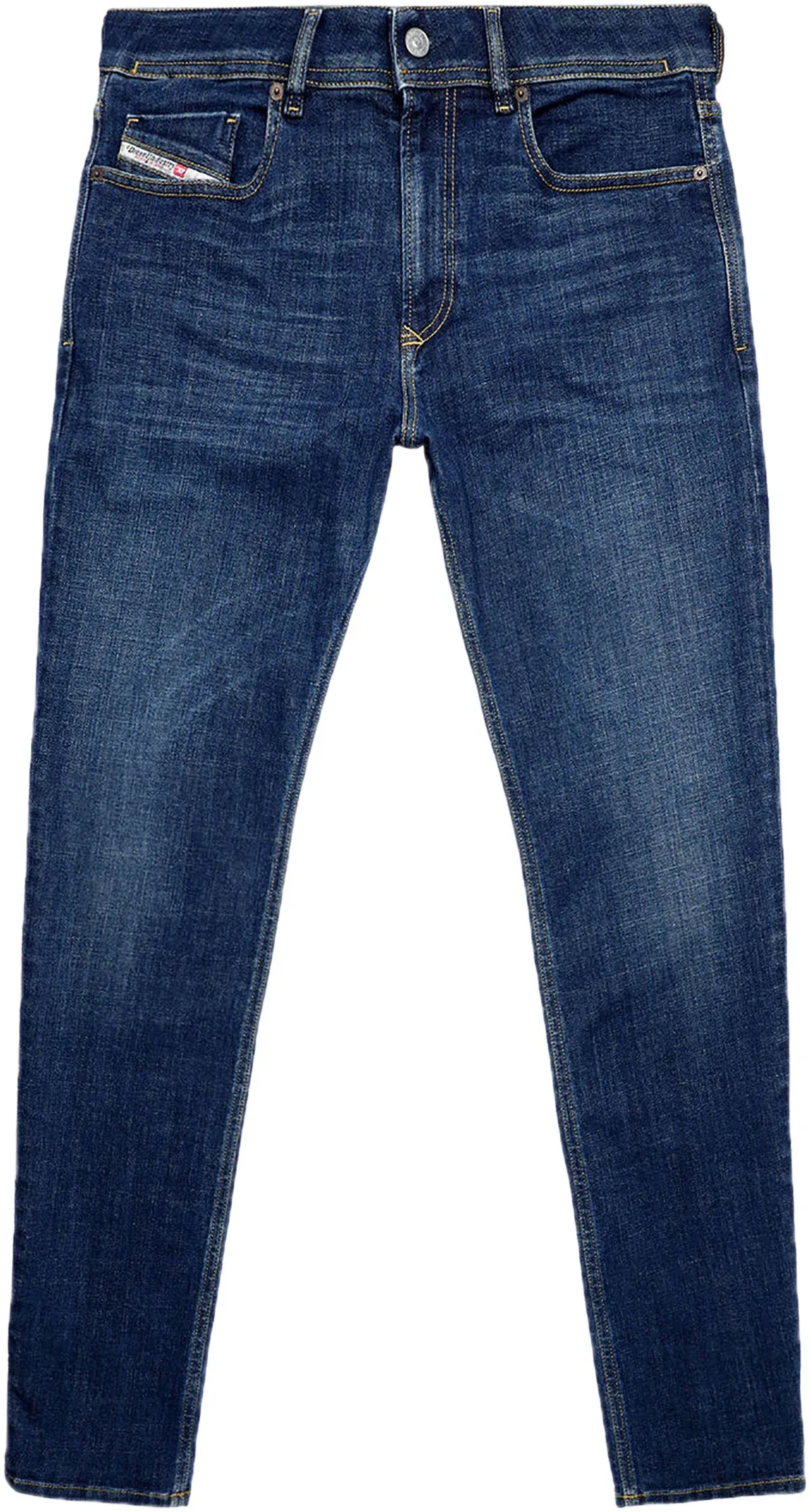 Crafted from super stretch fabric, this dark blue wash denim features skinny style with a punk rock attitude in mind. This denim has a low waist, regular length and narrow leg from thigh to ankle. It has button fastening, belt loops and classic five pockets. These are machine washable and is perfect comfortable wear for casual occasions.
