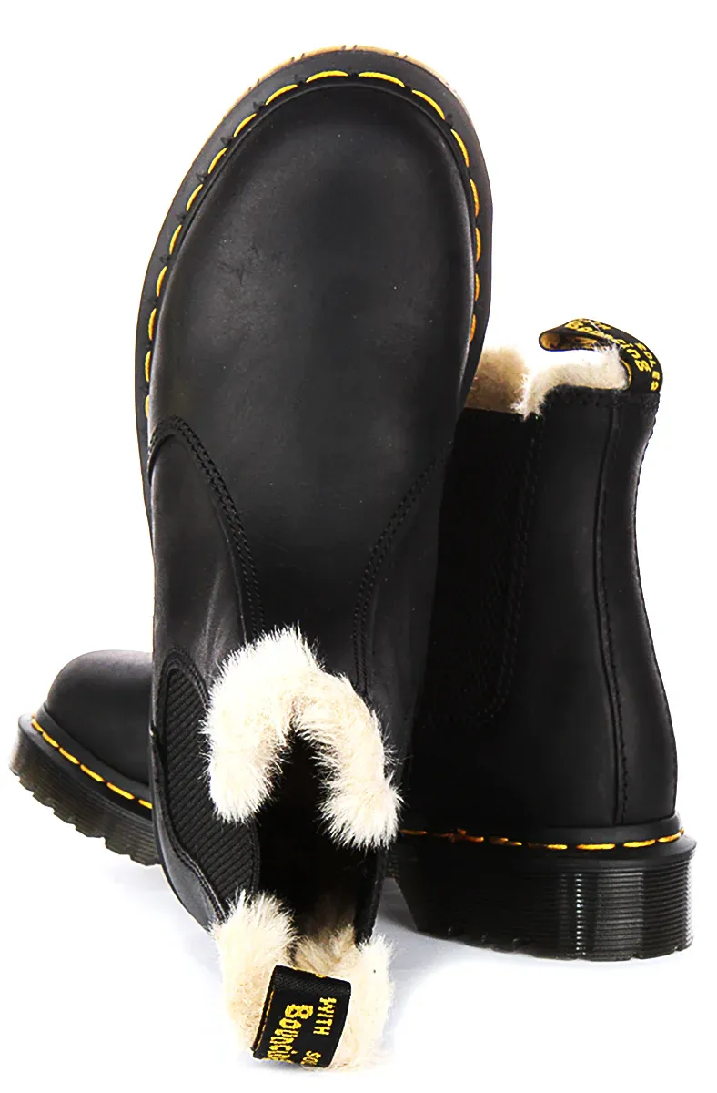 The **Dr Martens Women’s 2976 Leonore Leather Ankle Boots** are an elegant yet robust pair of shoes designed for both style and practicality. These ankle boots showcase the classic Dr Martens aesthetic, updated with a cosy and functional twist, making them ideal for both casual and outdoor wear in cooler weather.