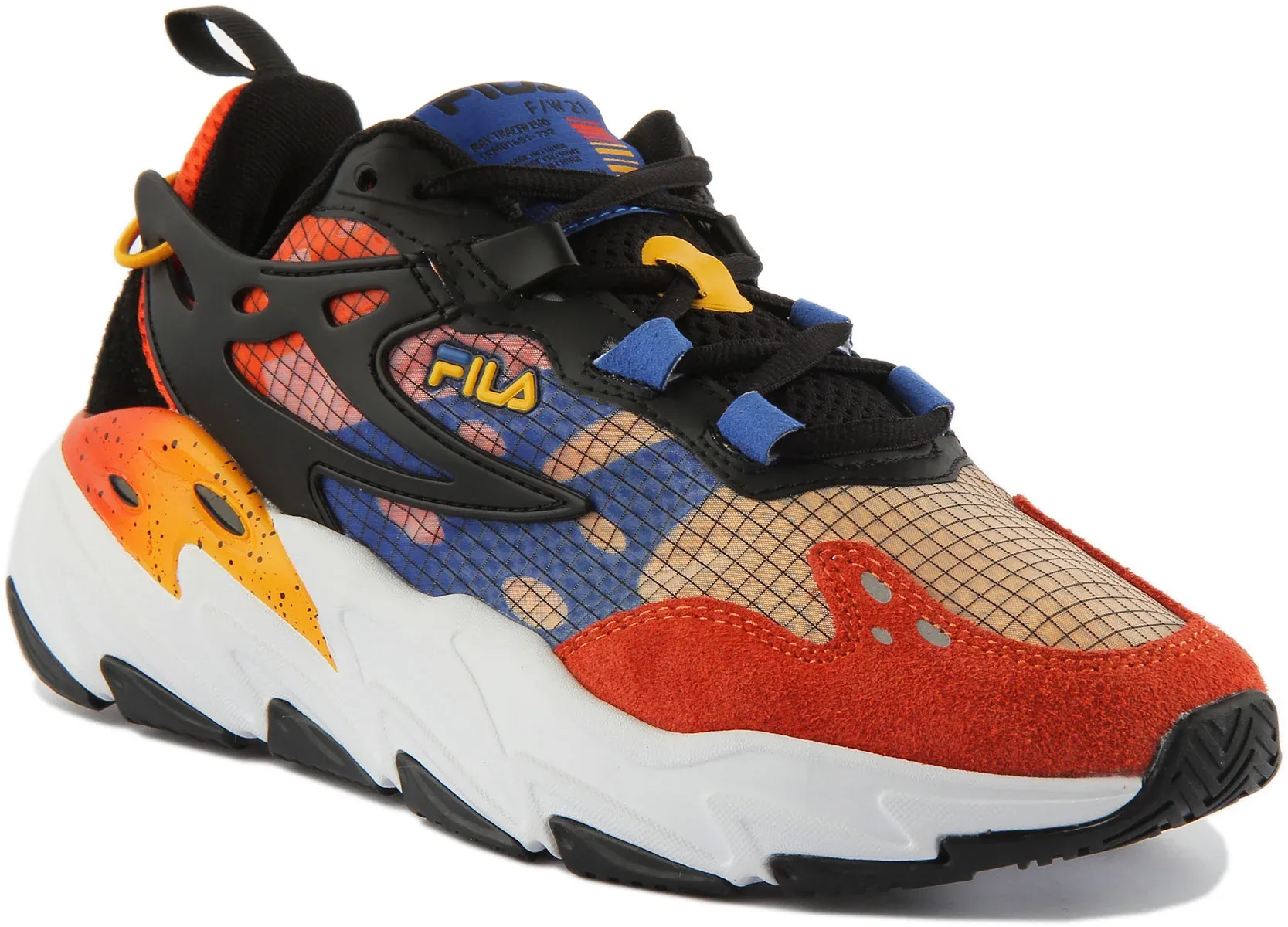 Discover your style in Fila Ray Tracer Evo trainers featuring premium synthetic upper with subtle grid print. It has a secure lace up closure and heel pull tab for easy on and off. Underfoot, they are sat on a chunky yet lightweight foam midsole for ultimate cushioning, while a grippy slip resistant outsole ensures excellent traction. Finished with Fila branding, these trainers are perfect for all day, everyday use.