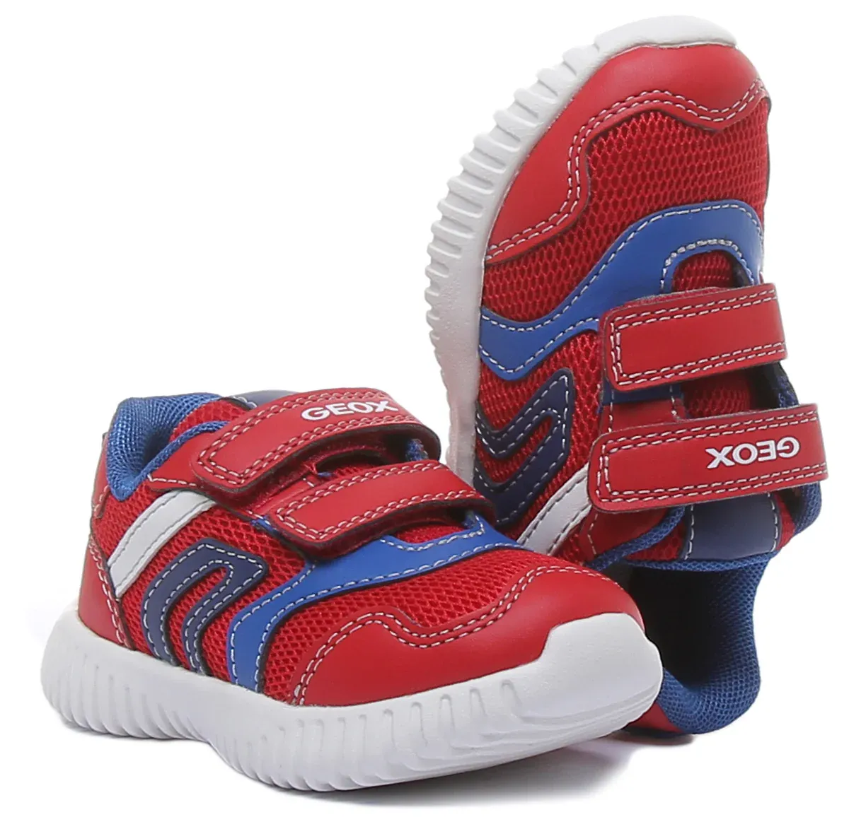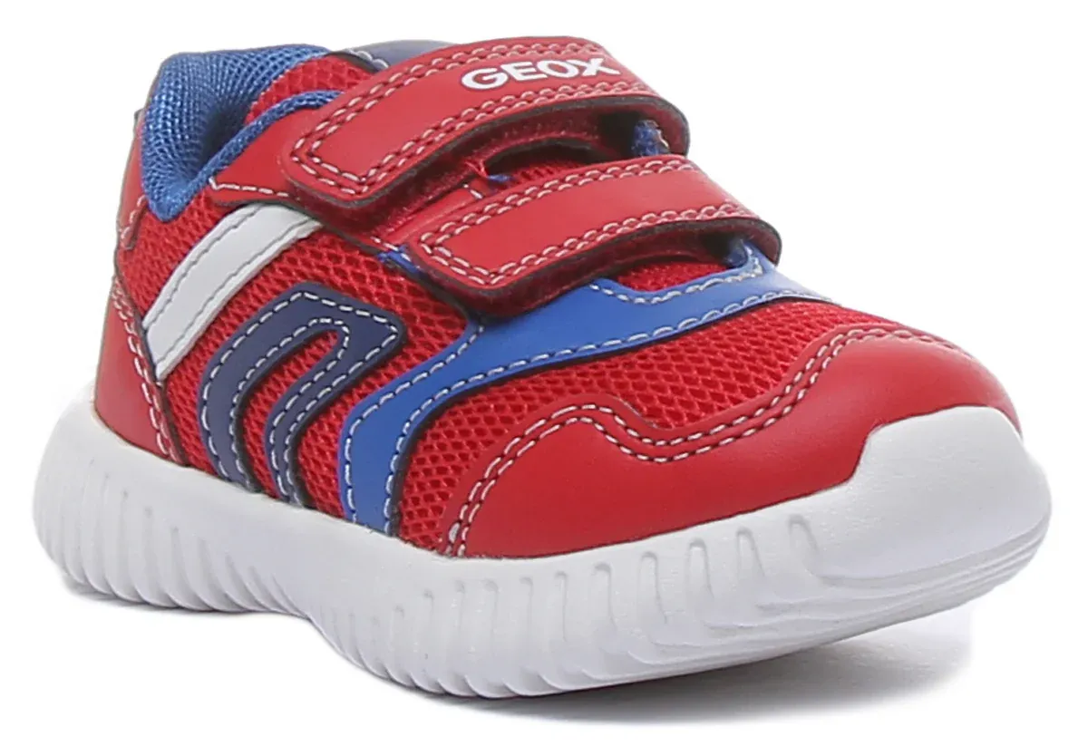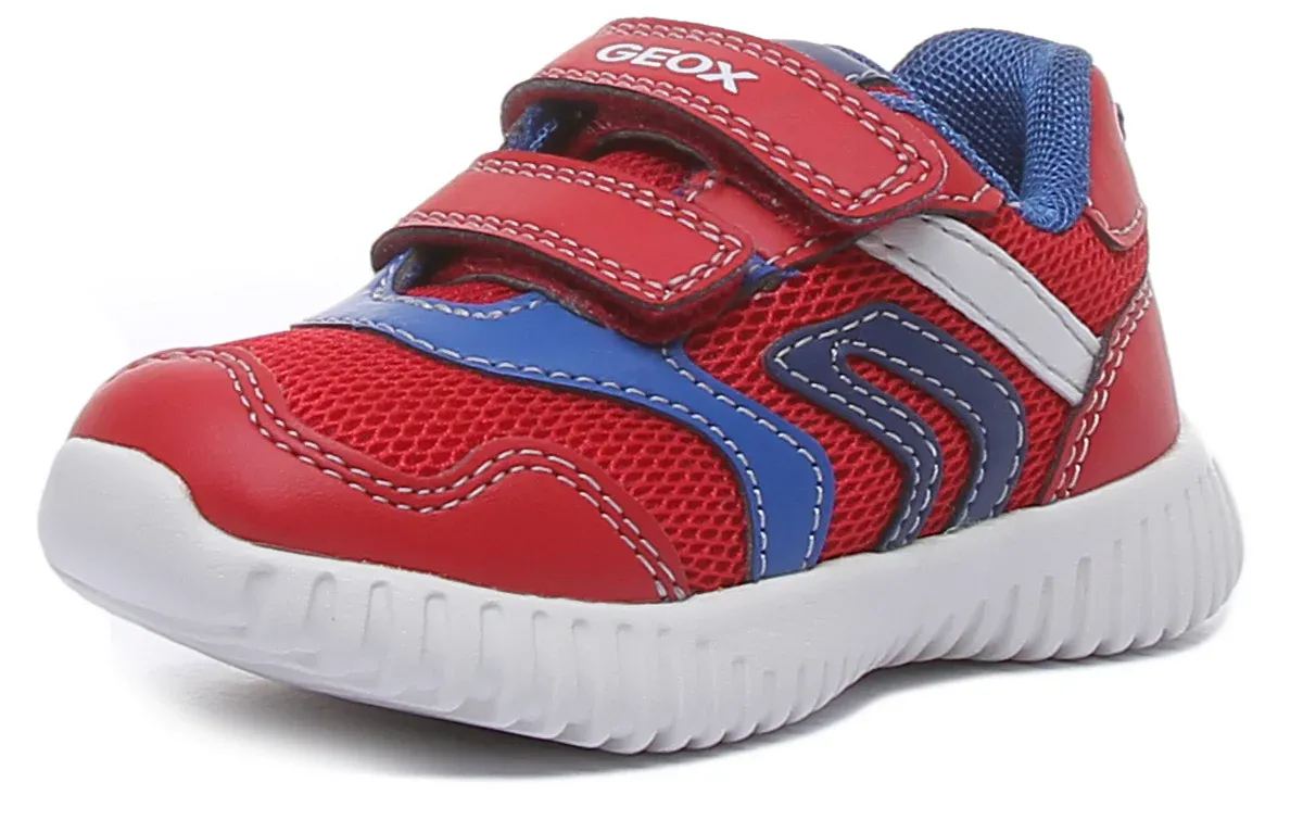 Geox Waviness is ideal for any time of the day and a perfect complement to a sporty outfit. Crafted from a leather-effect material and mesh, it taps into a running-shoe aesthetic and features a double riptape fastening for a practical entry and adjustable fit. The lightweight EVA outsole provides a cushioning effect, while the removable footbed is practical and hygienic, ensuring a heightened sensation of well-being.