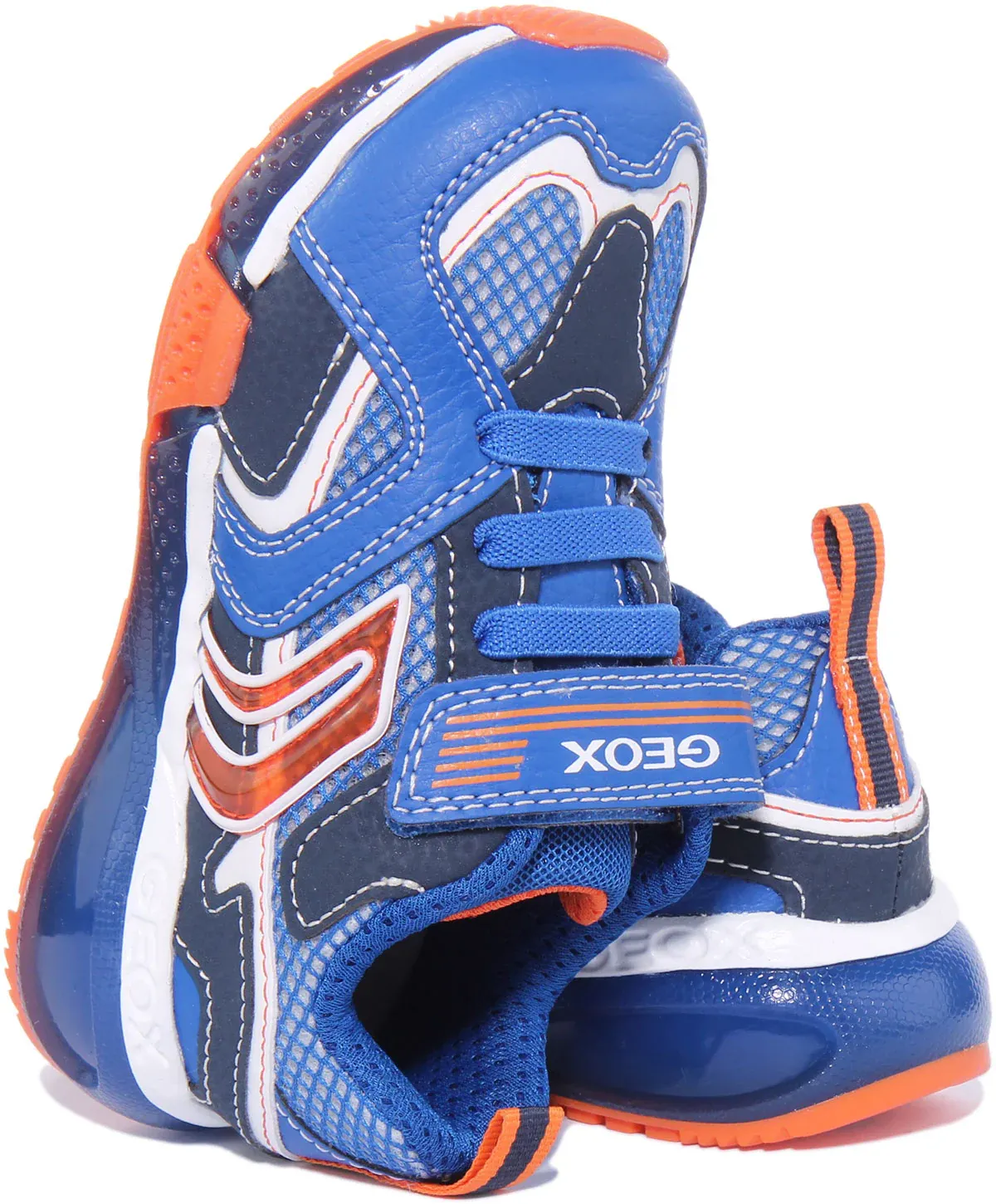 Add superior comfort to your kid’s feet with these Geox J Bayonyc low top sneakers. Made from synthetic and mesh, it features elastic laced front with single rip tape closure and lights built into the transparent outsole. It has removable footbed for hygiene and freshness, while the perforated traction outsole ensures breathability. These sneakers are ideal for casual outfits with a fun vibe.