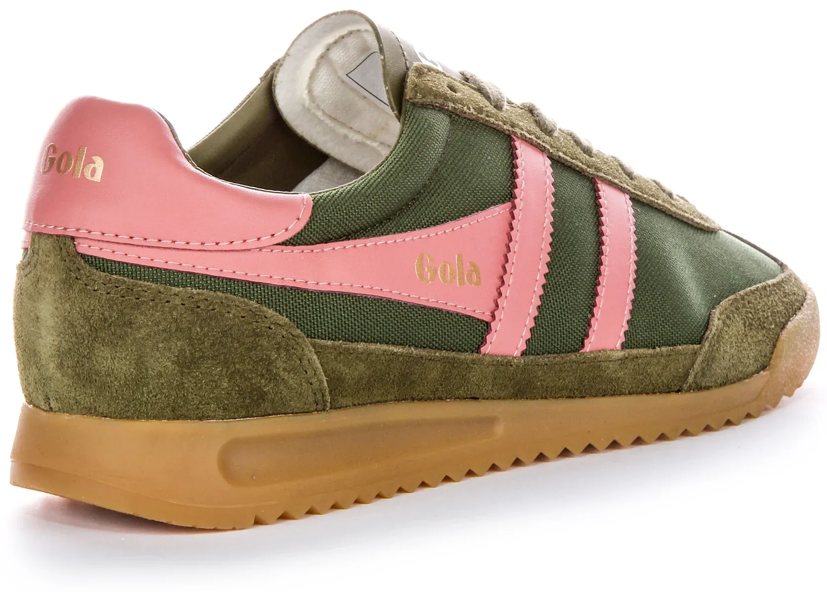 The green and pink color combination adds a vibrant and trendy touch to your ensemble, making them a standout choice for both casual outings and light workouts. With suede trim detailing and a comfortable fit, these trainers provide support and style for all day wear.
