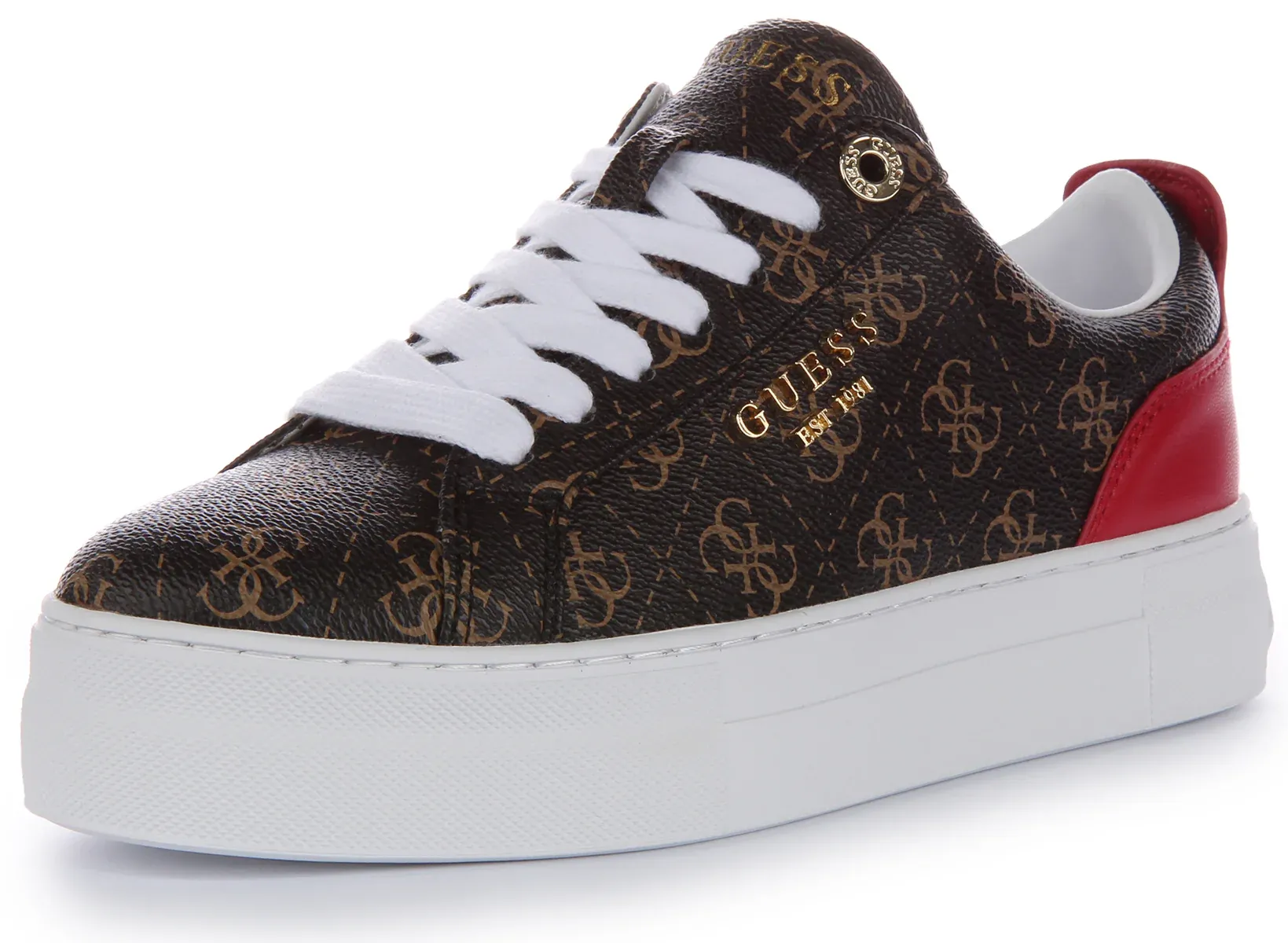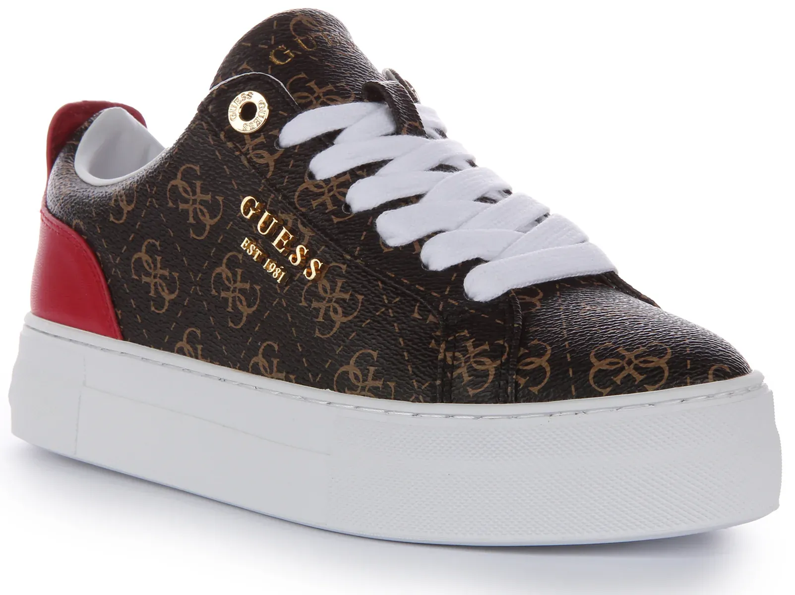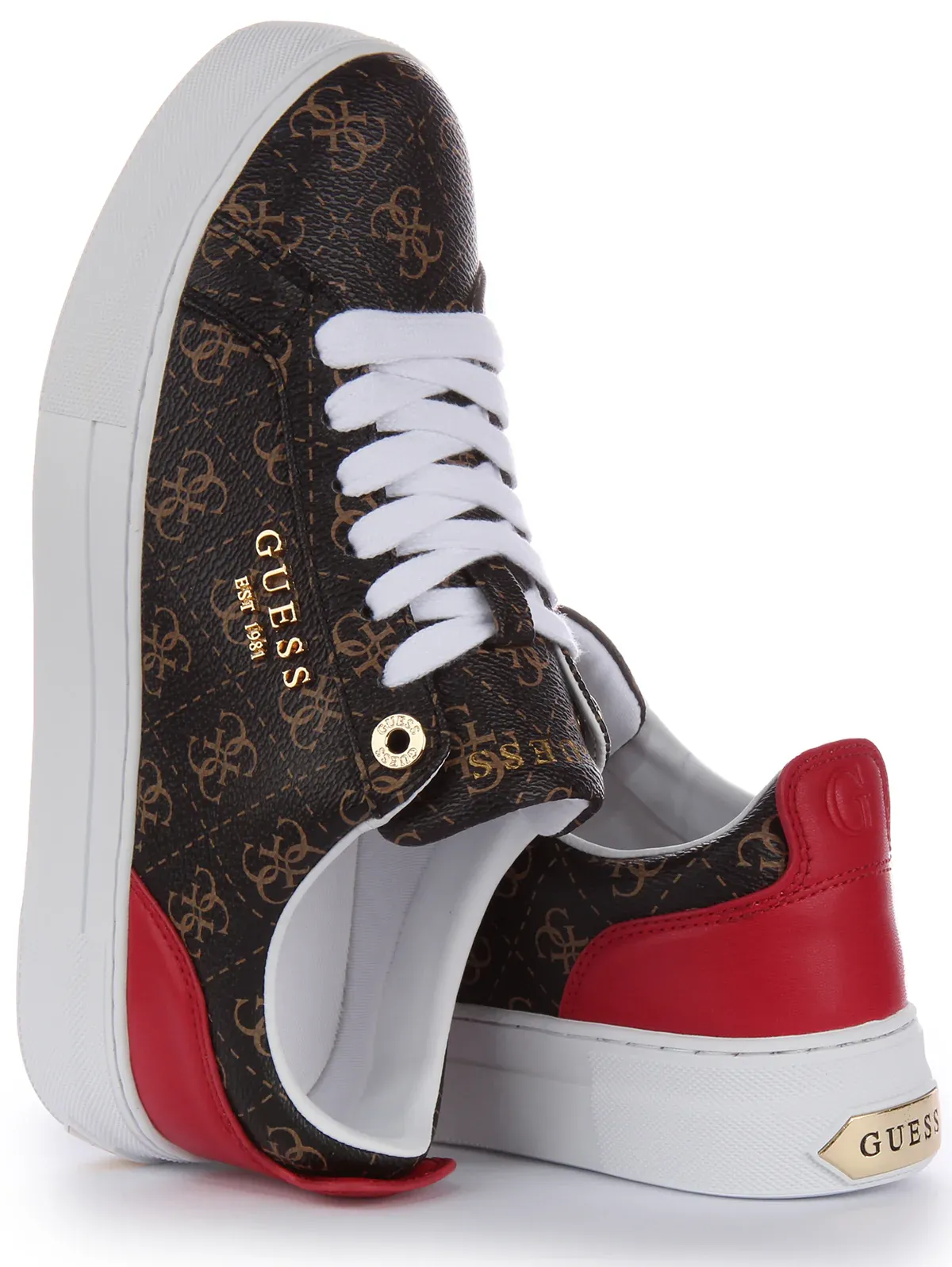 These trainers combine fashion and comfort seamlessly. The faux leather material mimics the luxurious look of genuine leather while being crueltyfree. The Guess branding adds a glamorous touch, making these trainers a chic choice for casual outings. The comfortable insole ensures a pleasant walking experience, making them a staple in any fashionforward wardrobe.