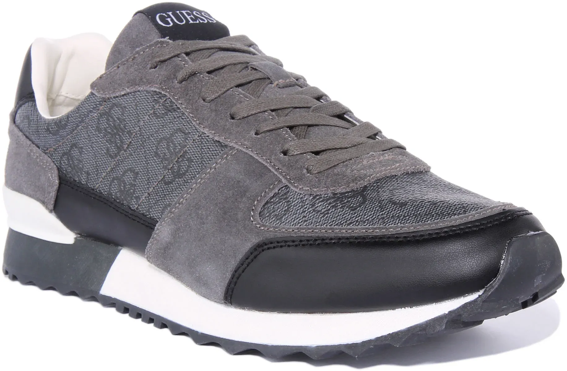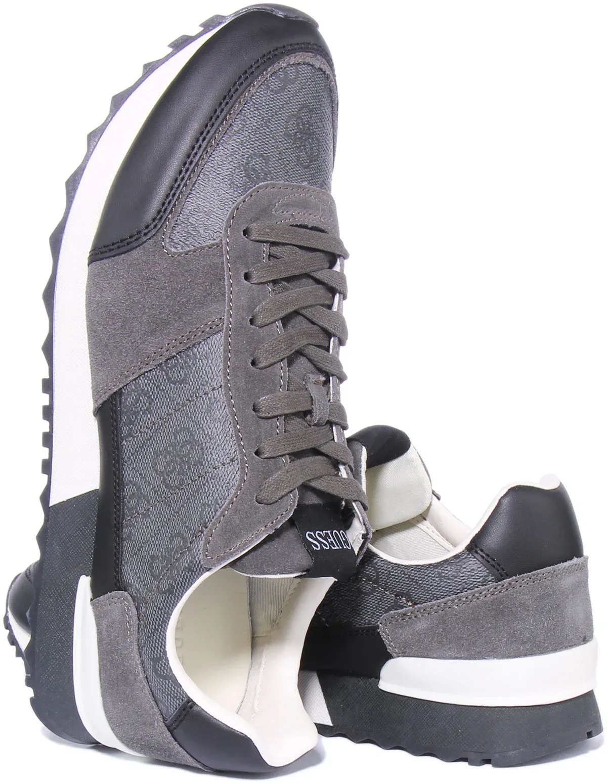 These are running inspired leather blend sneakers featuring round toe design and lace up closure. It has fabric lining for breathability, leather insole for comfort and rubber outsole for excellent traction. Finished with signature Guess branding, these casual trainers are perfect for everyday wear.