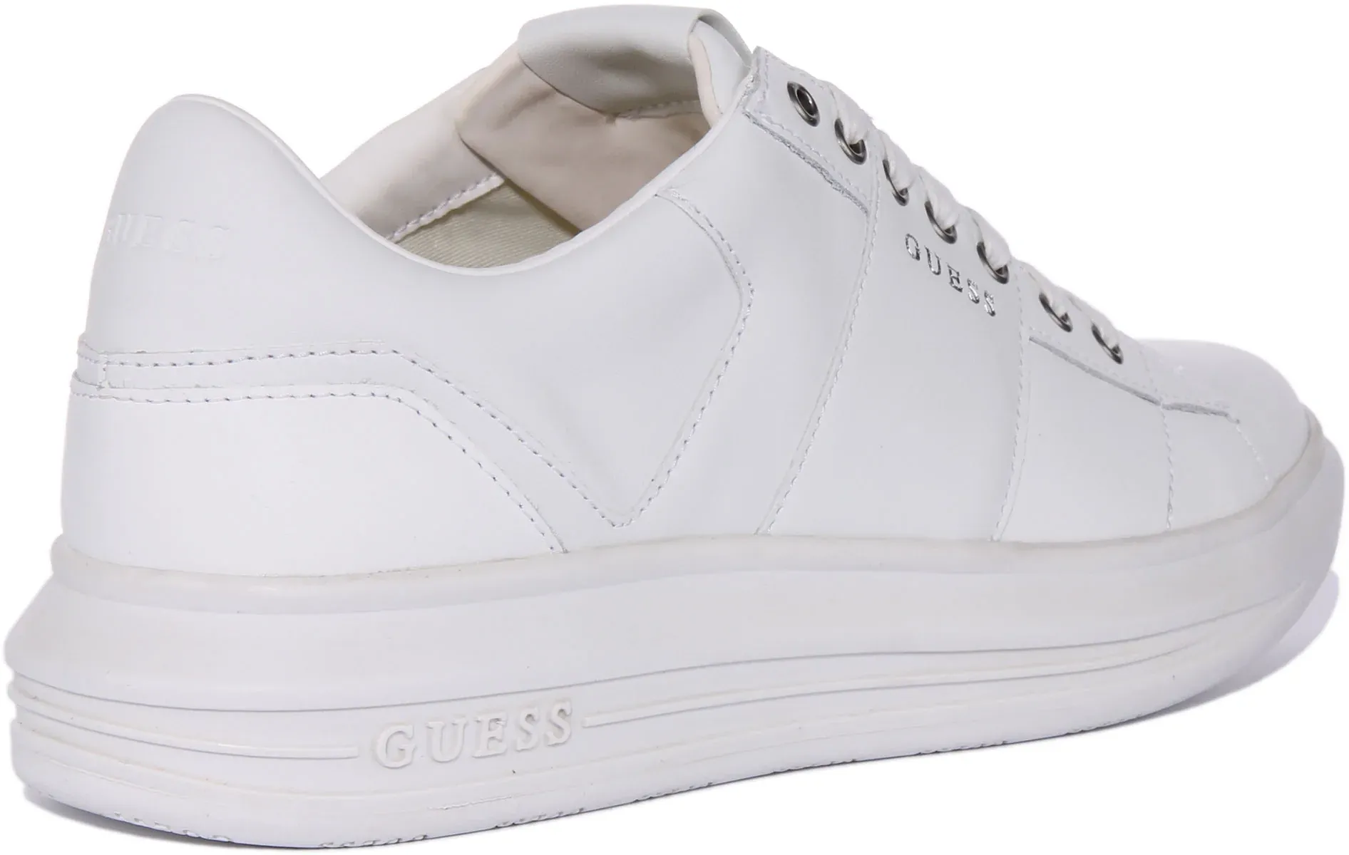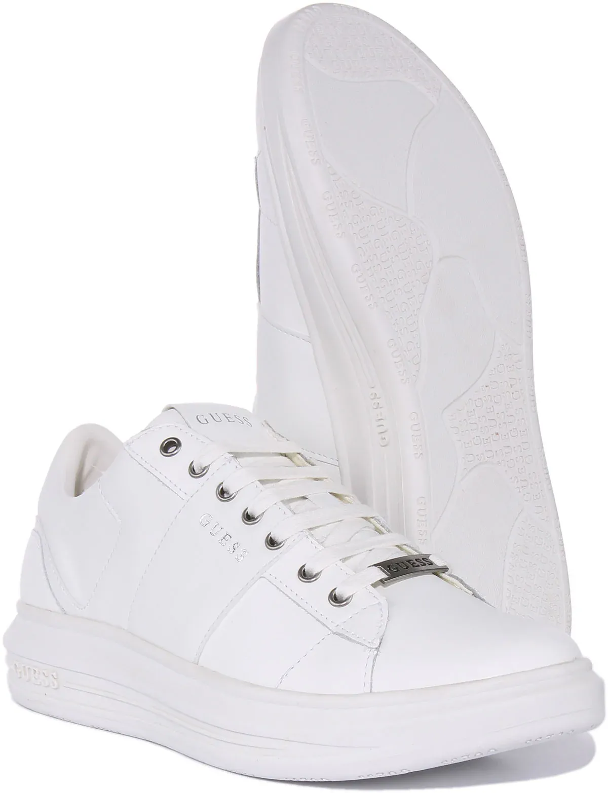 A perfect combination of style and comfort, Guess Vivo Salerno low top trainers are made from high quality faux leather upper with round toe design. It features lace up closure for a secure fit, fabric lining and leather insole for added comfort and rubber outsole for stability and durability. Finished with Guess branding, these trainers are perfect for casual wear.