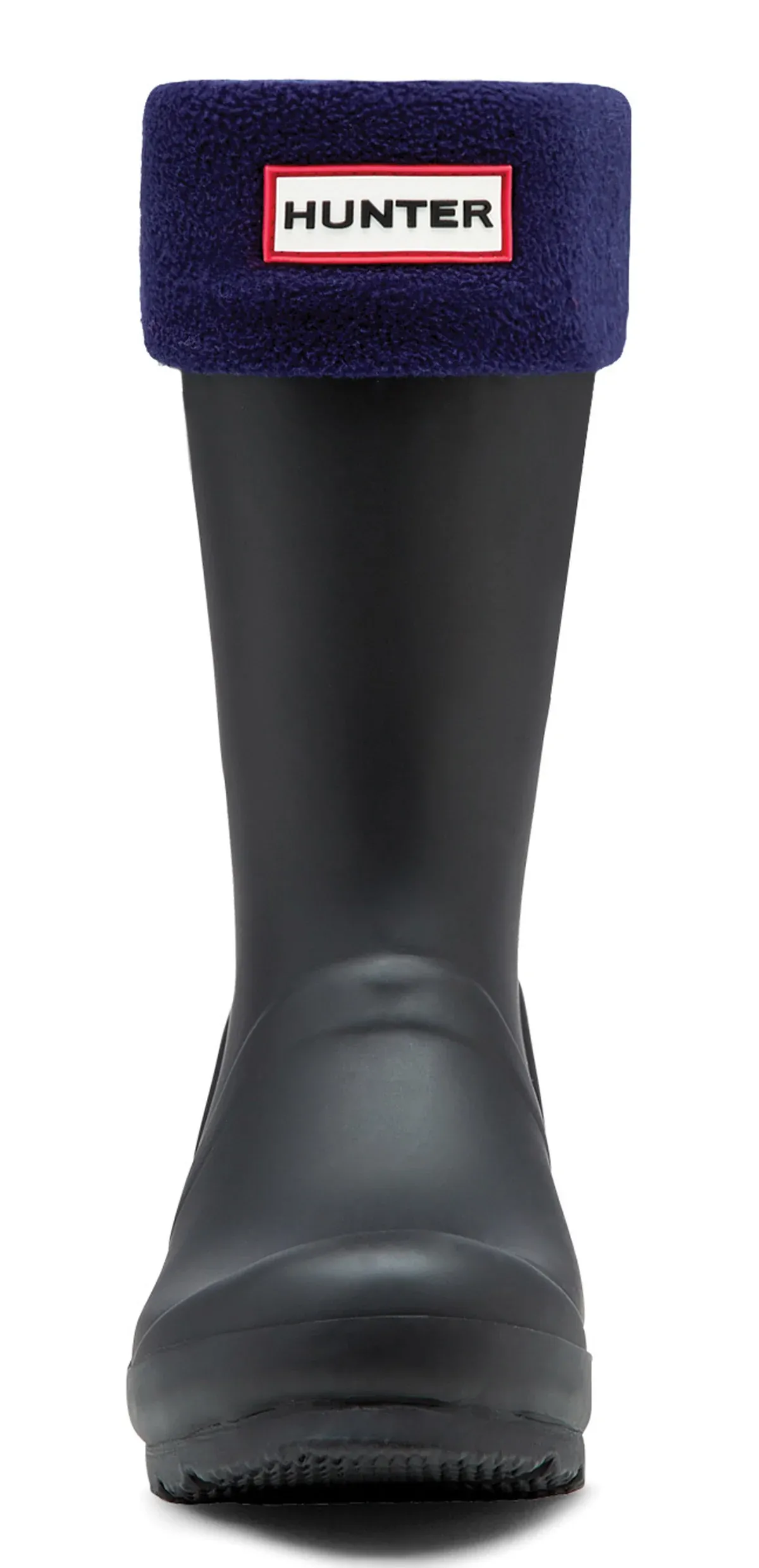 Crafted from soft polyester fleece, these boot socks are designed to enhance fit while giving added comfort and warmth. Featuring Hunter branding on the front and a fold-down cuff, your little ones feet will be feeling snug in those colder days of the year. Pair these with the Original Hunter Kids boot and get ready for the cold winter days.