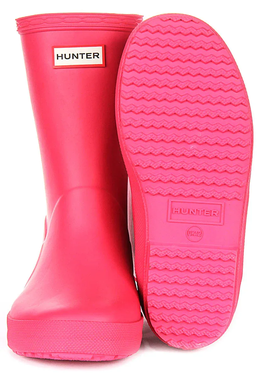 The Hunter Kids First Boot is a practical yet stylish pair of wellingtons designed specifically for infants. Carefully crafted with the growing child in mind, these wellies ensure comfort, durability, and protection from muddy puddles or rainy days. Their bright pink colour adds a touch of fun and charm, making them a delightful choice for little ones.