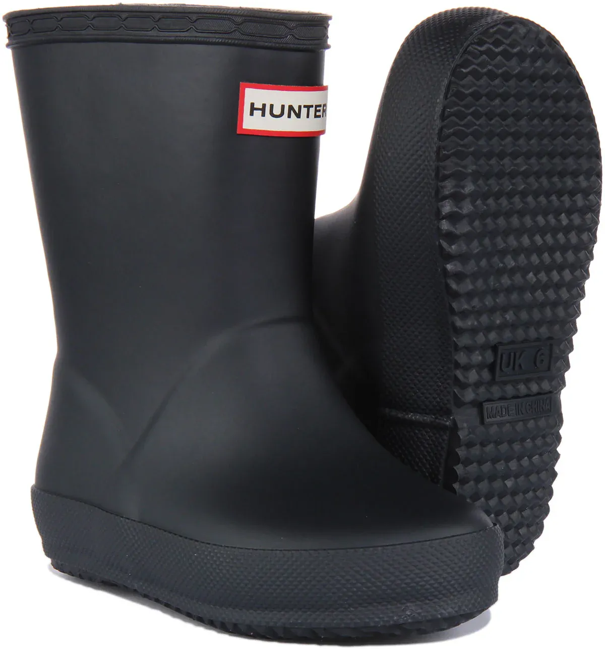 Finished in a beautiful matt, the Hunter Kids First Original Wellington is a specialised welly. A flatter sole and rounder toe gives little feet room to move and the soft cotton lining ensures complete comfort for every adventure. Fully handcrafted from natural vulcanized rubber, they feature a specially developed tread to reduce slipping. These boots are 100% waterproof.