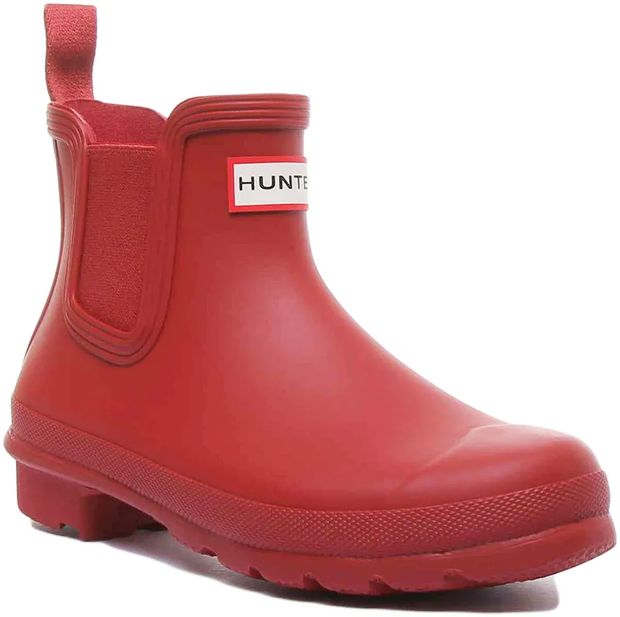 The Hunter Original Chelsea Boot is handcrafted from natural rubber and vulcanized for superior protection. It features elasticated gussets and a nylon pull tab make for easy wear. These waterproof boots have polyester lining and rubber outsole with the Hunter Original tread pattern that provides grip on most surfaces. With a classic matt finish, these ankle boots are a wet weather wardrobe essential.