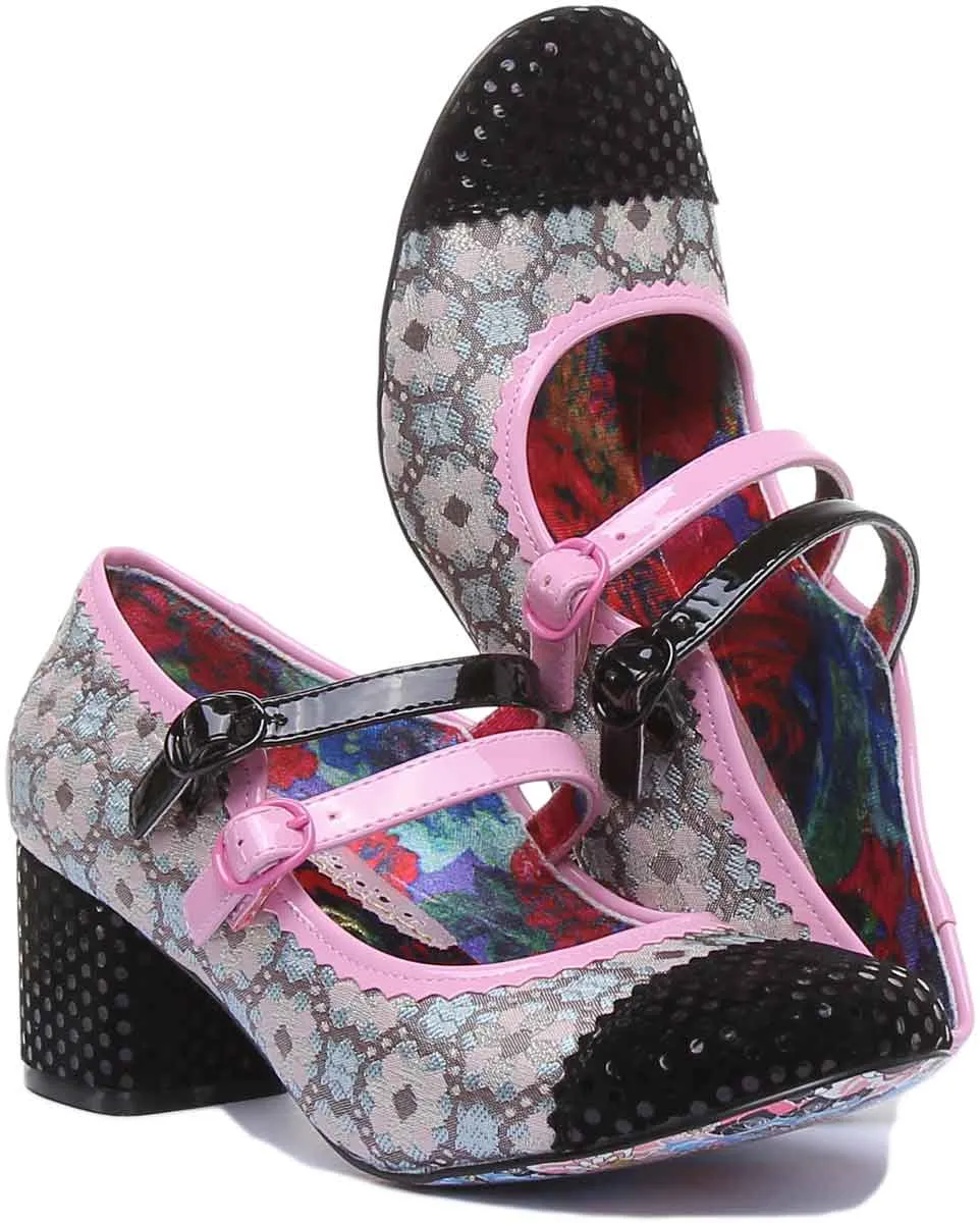 Get ready to don your best party frock and pull some shapes on the dancefloor in a pair of these groovy shoes. Featuring a retro-inspired printed synthetic upper, these mid heel shoes have double ankle strap buckle fastening for a perfect fit. Completed with floral outsole and cushioned insole, these shoes are perfect for parties or any casual occasion.