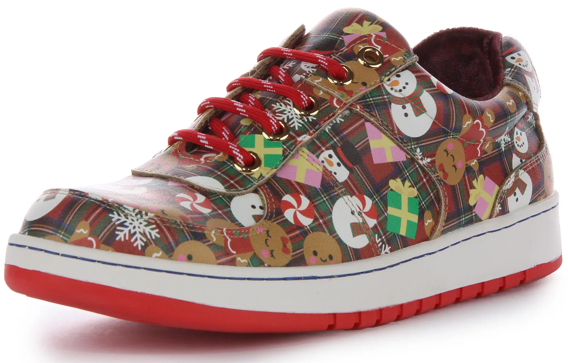 Get your best casual festive look with these charming trainers from Irregular Choice. Featuring festive tartan upper, these low top trainers feature cushioned insole and are fully lined. Perfect lace up trainers for down the pub or even for a night out.