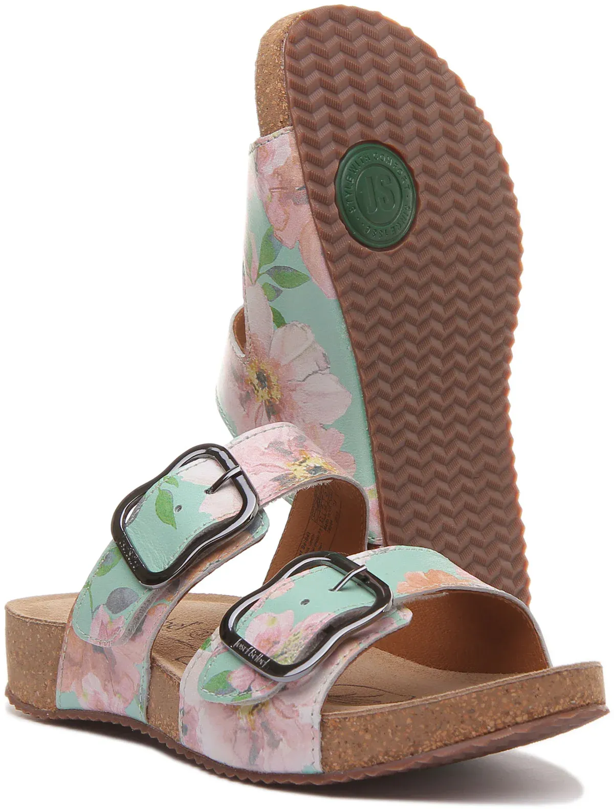Tonga 64 are lightweight, flexible leather sandals with two adjustable riptape straps with decorative buckles. Made from premium leathers, Tonga 64 is an elegant and versatile pair to wear during the day or evening. It has a cork footbed and a modern low wedge heel. These breathable sandals have a cushioned comfortable sole that provides added support to your feet in every step.