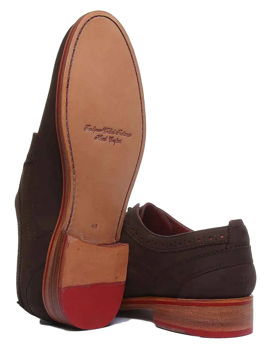 Made from premium nubuck leather upper with Goodyear welt construction, Justin Reess Owen shoes feature lace up closure for a secure fit and slip-resistance outsole for stability and durability. Clean and simple stitch details along with wooden effect sole add extra elegance to the shoe. Perfect pair of shoes that will take you from desk to dinner.