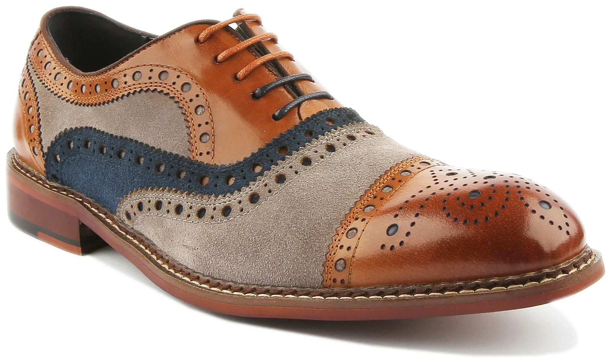 Made from premium contrast coloured leather uppers, Justin Reess Smith features lace up closure with beautiful punch details that adds extra elegance to the shoe. It features leather lining and insole for comfort, whilst the slip-resistance outsole ensures stability and traction. The combination of material and texture bridges the gap between casual and smart making it an ideal shoe to take from desk to dinner.