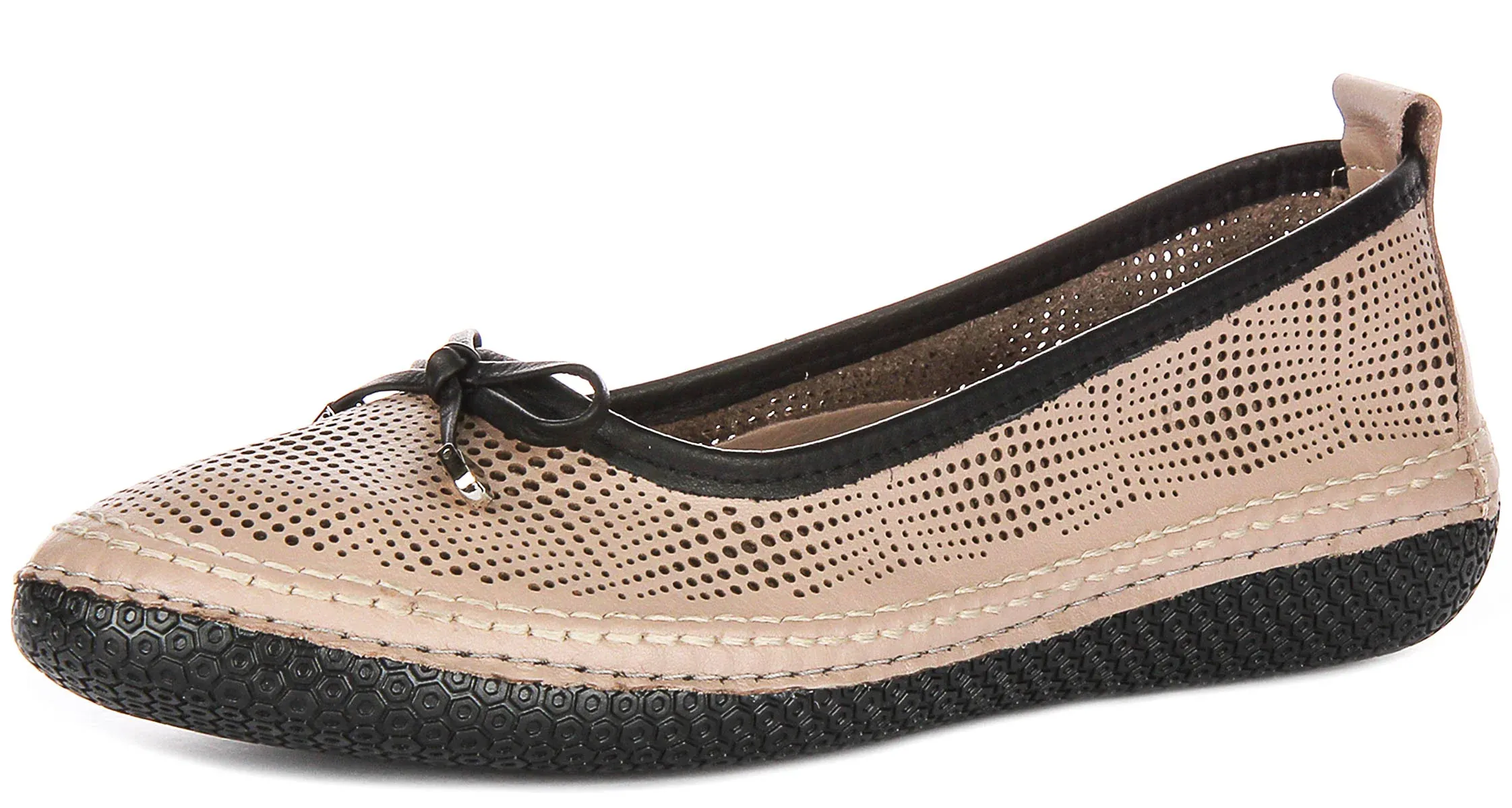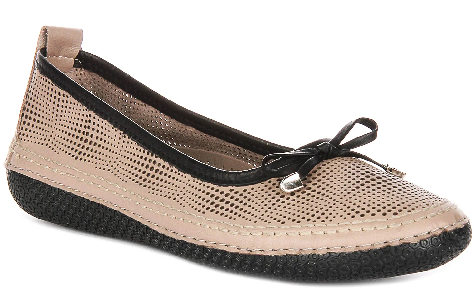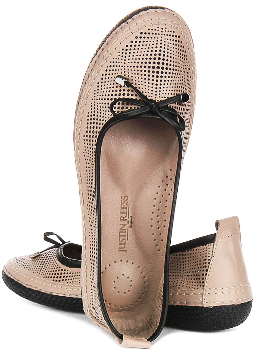 Justinreess England Alica In Beige For Women Classic Bow Tied Ballerina Geo