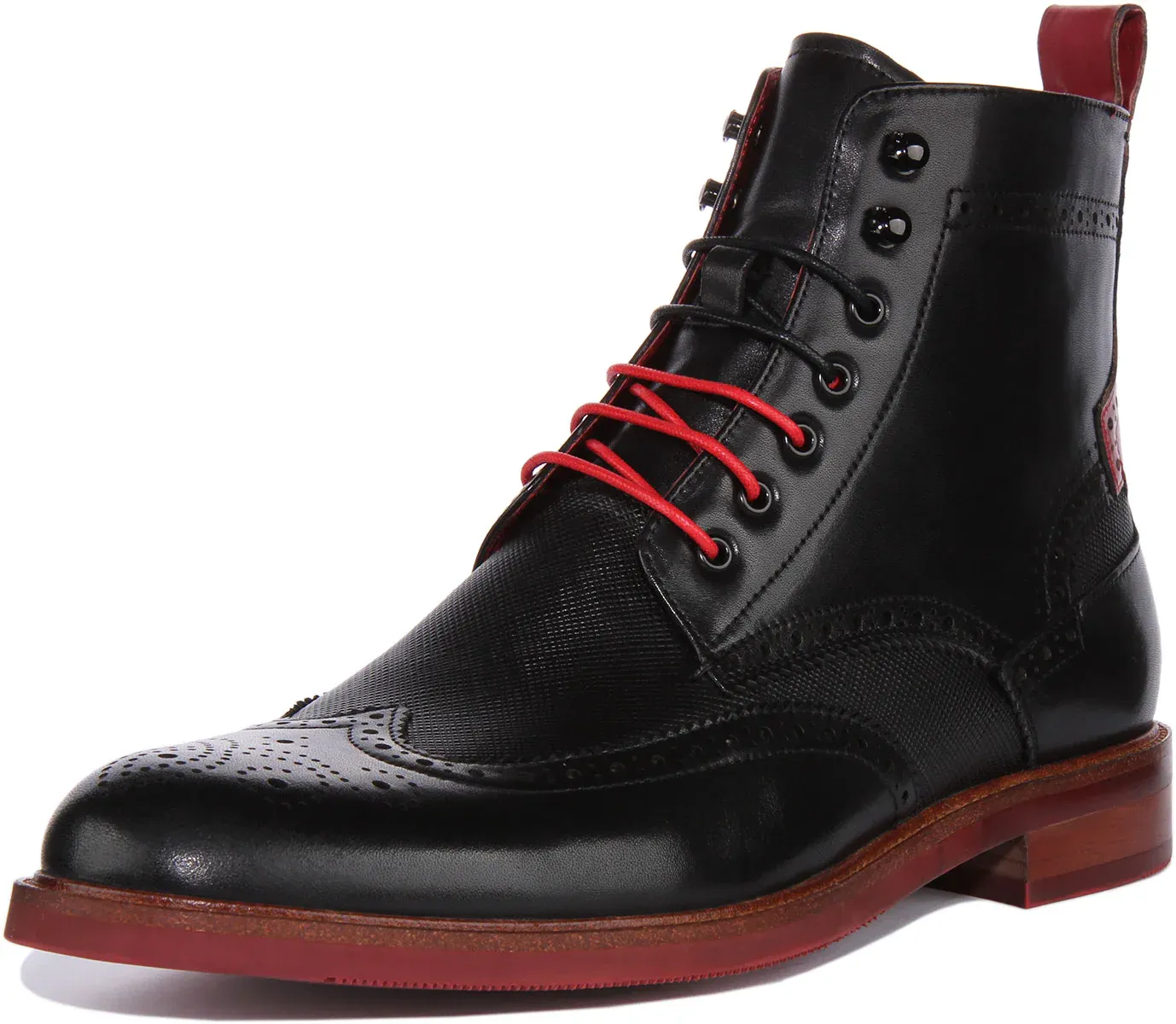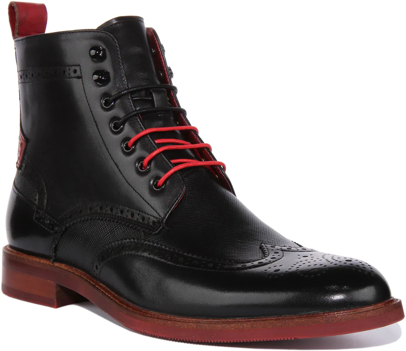 Put your foot forward in style in these JUSTINRESSS Cameron chelsea boots. Made from premium leather upper with brogue detailing, these ankle boots feature lace up closure. It has soft lining and slip-resistant outsole for comfort and stability. Perfect pair of boots that will take you from desk to dinner.