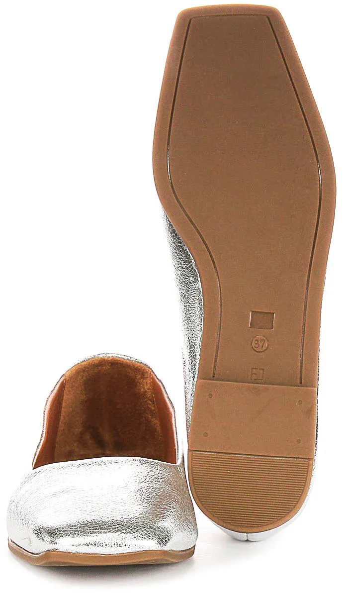 Justinreess England Giselle In Silver For Women Flat Balerina Block Heel Pump