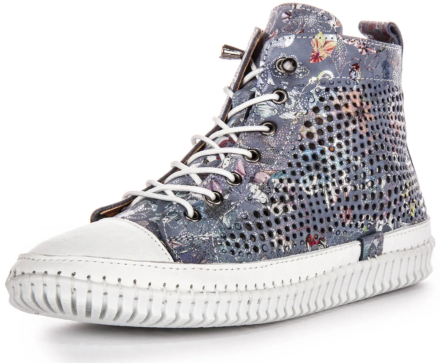 The intricate floral pattern, combined with the modern zip closure, creates a dynamic and stylish footwear statement. The hightop design adds an extra layer of fashionforward flair, ensuring these trainers are not only comfortable but also visually captivating.