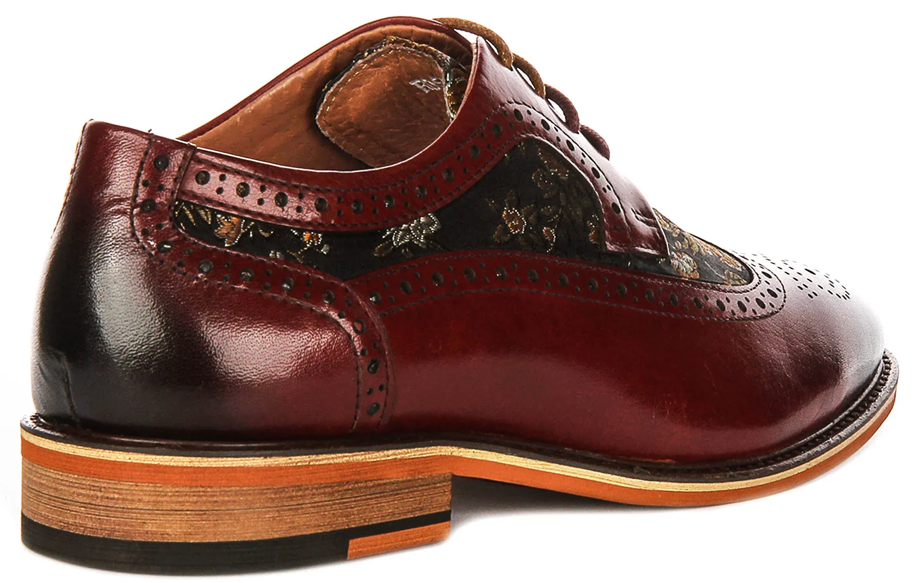 Justinreess England Ross W In Wine For Women Lace Up Floral Brogue Shoe