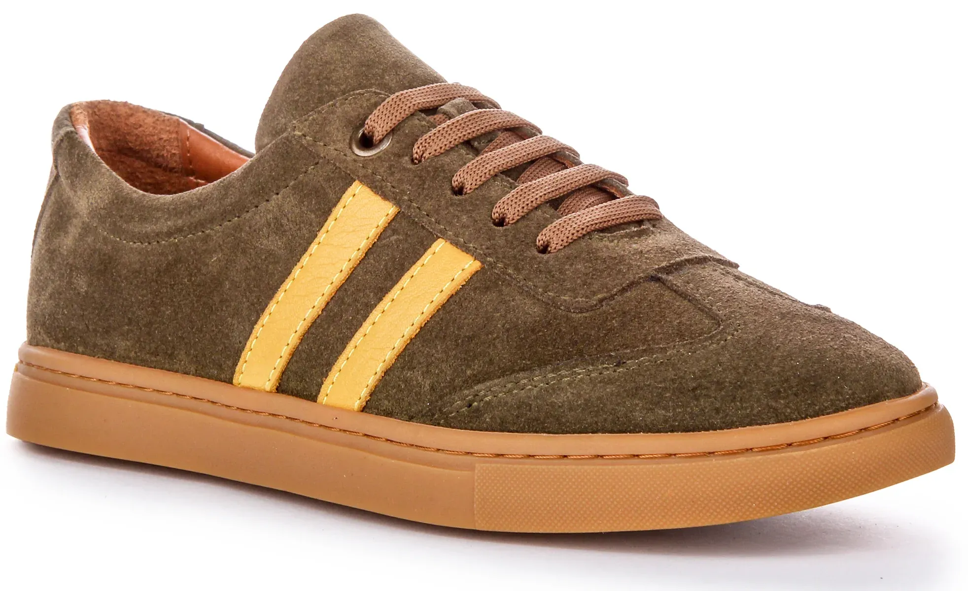 The unique khaki and yellow color combination adds a lively energy to these trainers, making them a standout choice. The retro lace design brings a touch of whimsy, creating a perfect balance between bold fashion and everyday comfort.