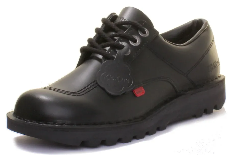Head back to school in style with these juniors’ Kick Lo shoes from Kickers, a low cut version of the legendary boot that’s sure to get heads turning. These shoes feature quality, hard wearing leather and a padded collar that keeps your foot feeling great, while a chunky midsole brings cushioned comfort like nothing else. The rugged, durable outsole delivers sturdy grip every step of the way.