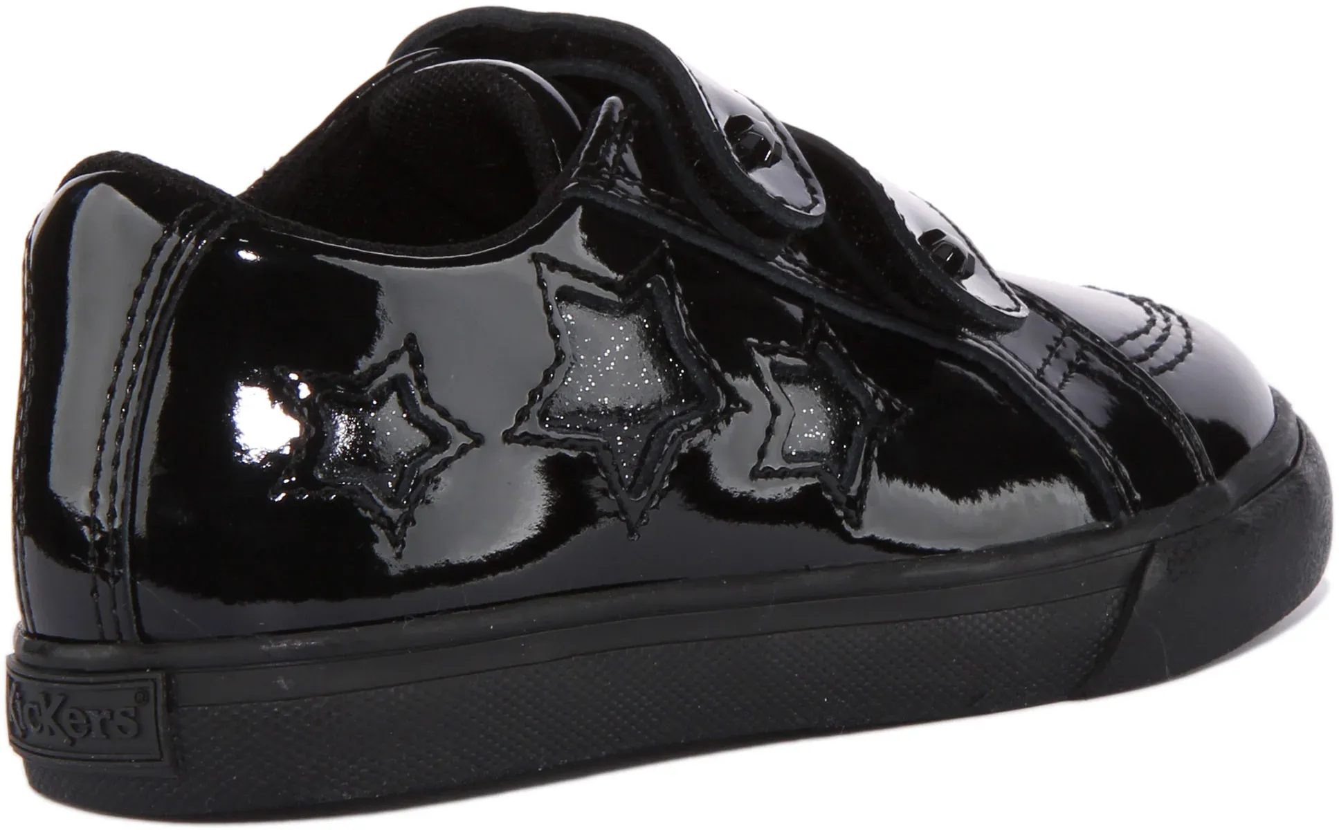 Tovni Star is a lightweight, premium quality leather shoe for juniors by Kickers with a laser cut star design and patent finish. This versatile shoe has a sturdy construction that is hardwearing, and hook and loop closure for easy on and off. Completed with slip-resistant outsole for stability in every step, these shoes are perfect for all day, everyday wear.
