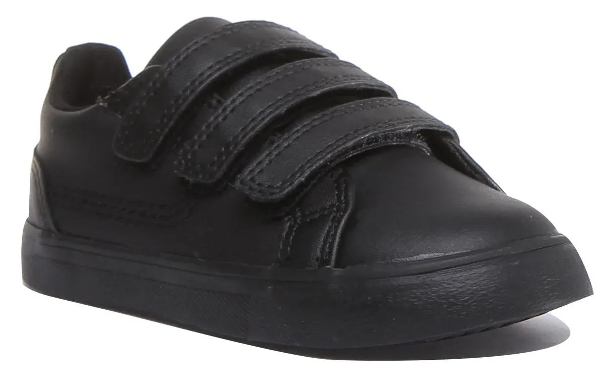 Tovni Trip from Kickers is an all-time casual leather shoe. This unisex style has a sporty construction that allows comfortable fit, while the sturdy soles are hardwearing. It features quality leather uppers for durability and comfort. It has triple hook and loop strap fastenings for a secure fit and triple stitch detailing adds elegance to the shoes. It comes with embossed logo on heel and trademark Kickers tabs.