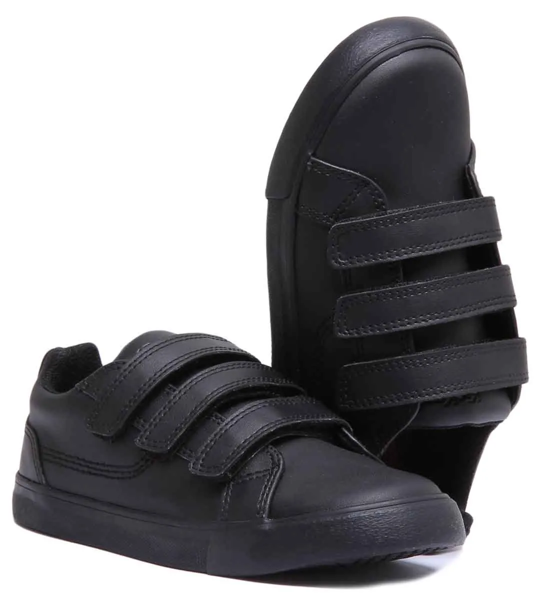Tovni Trip from Kickers is an all-time casual leather shoe. This unisex style has a sporty construction that allows comfortable fit, while the sturdy soles are hardwearing. It features quality leather uppers for durability and comfort. It has triple hook and loop strap fastenings for a secure fit and triple stitch detailing adds elegance to the shoes. It comes with embossed logo on heel and trademark Kickers tabs.