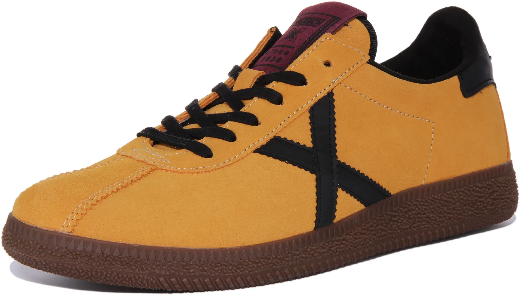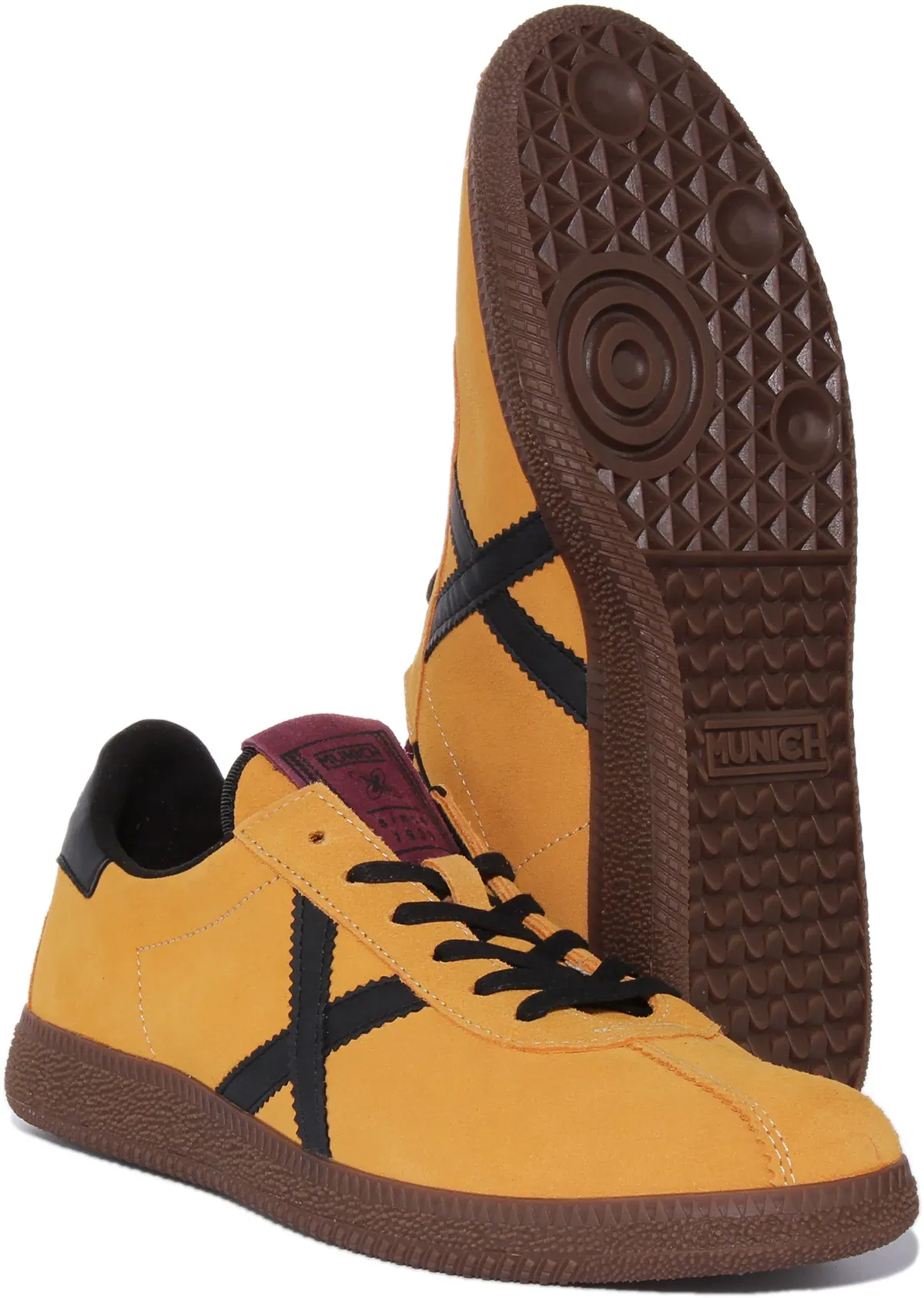 These retro inspired trainers are crafted from split leather combined with synthetic leather trims. It features lace up closure for a secure and adjustable fit and slip resistance rubber sole provides excellent grip and stability. Completed with Munich brand logo label, these sneakers are best when paired with jeans or any casual trousers.