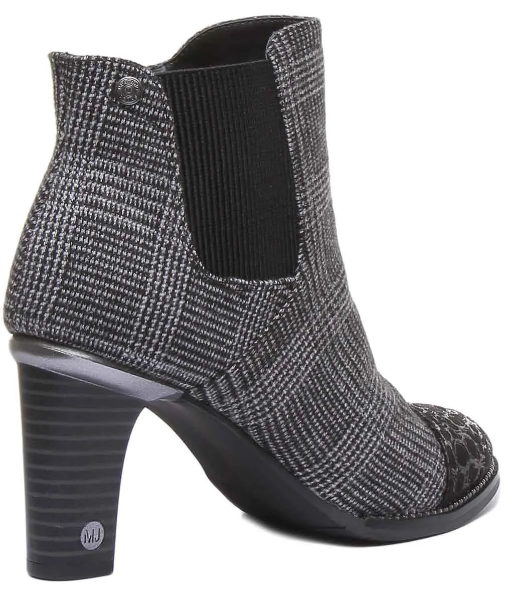 Blending elegance and modern chic, this is a feminine sleek ankle boot that can be taken from day to night. Dressed up or down, the beautiful printed toe and ankle with stacked heel adds grace and delicacy to any casual outfit. The upper is crafted from a premium synthetic and supportive footbed technology makes them addictively comfy. It has elasticated side panels with side zip for customized and perfect fit.