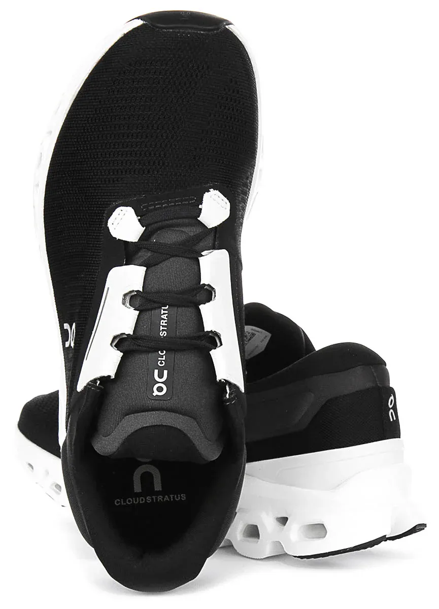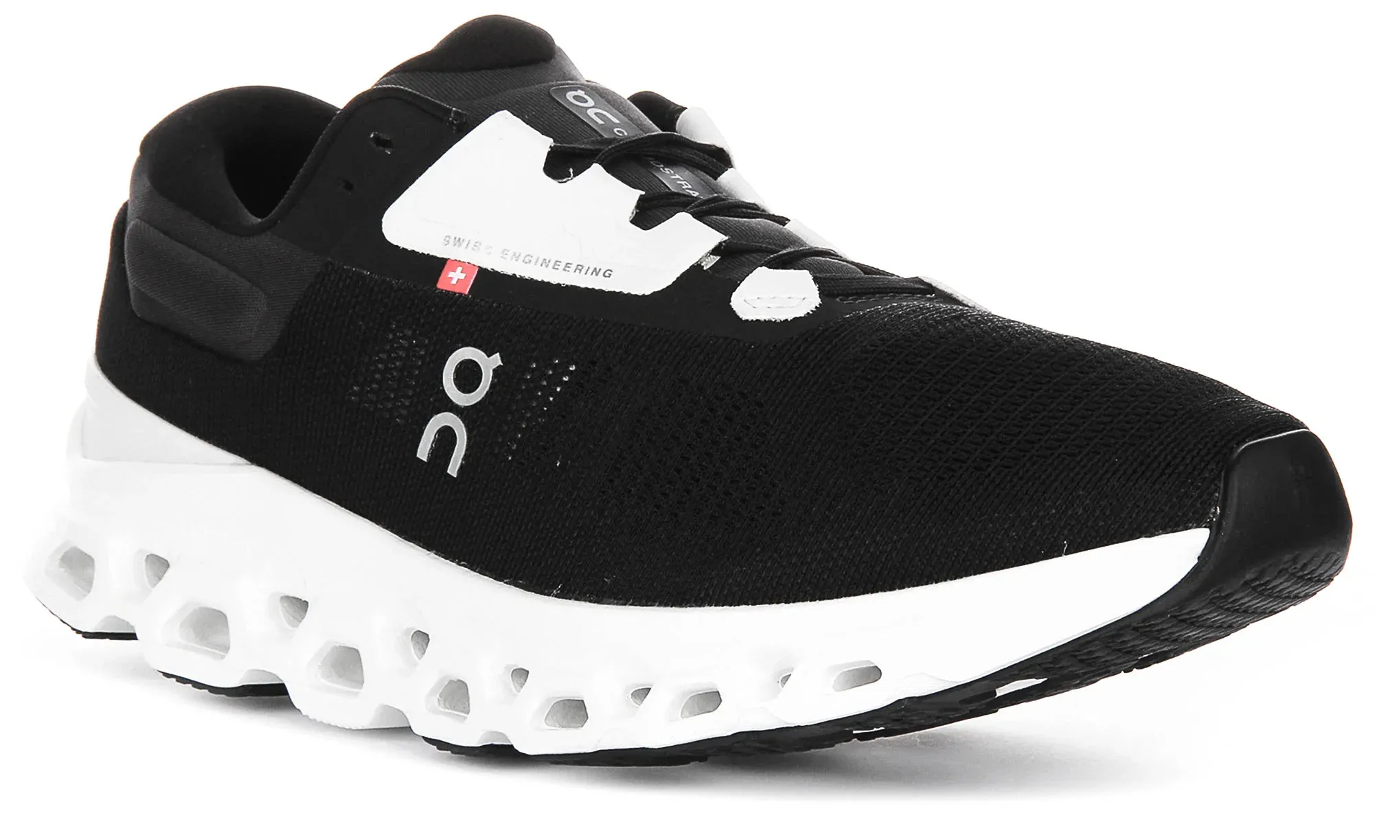 The On Running Cloudstratus 3 trainers are expertly designed for men, featuring a modern and innovative approach to athletic footwear. Crafted by the renowned Swiss brand, On Running, these trainers exemplify cutting-edge design and engineering tailored to enhance your performance and comfort. They showcase a stylish and versatile black colour with distinctive branding, making them a suitable choice for both sports and casual wear.