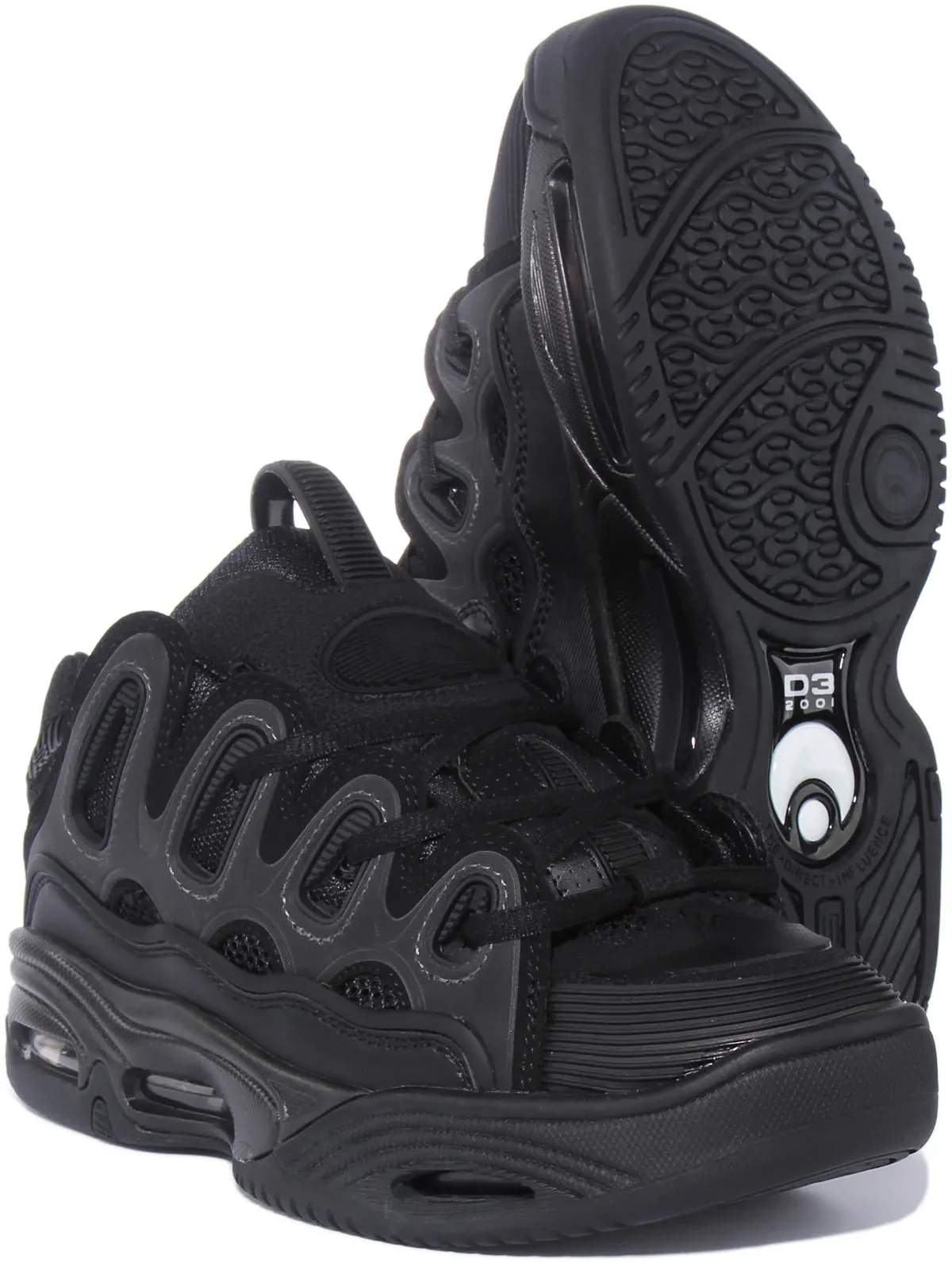 The synthetic construction ensures durability and easy maintenance, while D3 2001 technology enhances performance and support. Ideal for skateboarding and other active pursuits, these trainers In Black add a timeless and edgy element to your street style, making them a standout choice for the fashionforward individual.