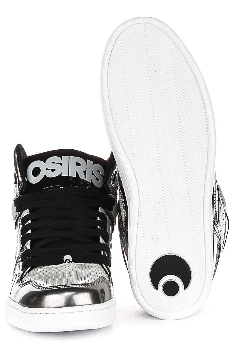 These trainers blend skate specific functionality with sleek urban style, featuring a sophisticated silver color scheme. Crafted from a blend of leather and synthetic materials, they offer durability and flexibility for optimal performance. The supported heel and mid top design provide stability and ankle support, essential for intense skate sessions.