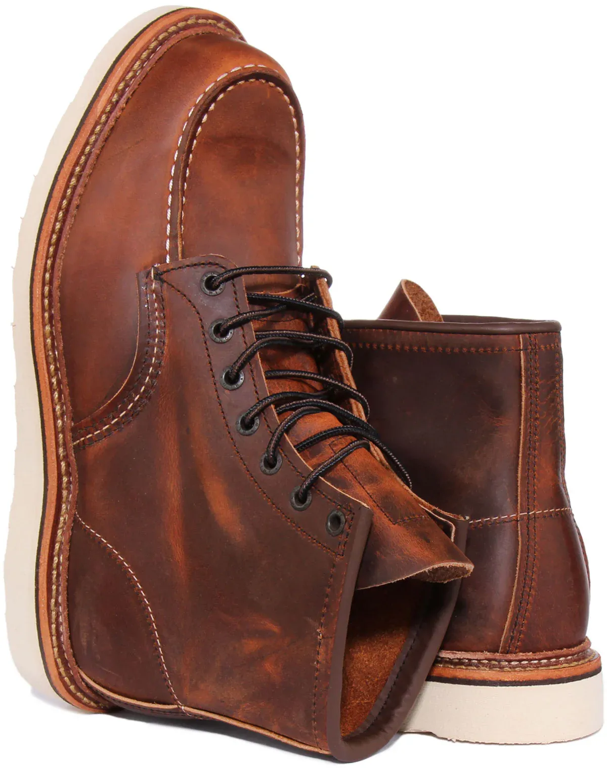 These boots boast durability and comfort but also feature the signature moc toe design that sets them apart. The copper color adds a rugged yet refined touch, making them an iconic choice for any casual ensemble.
